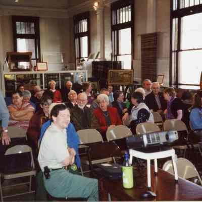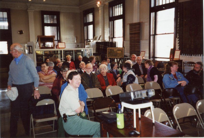 First Membership meeting for several years in May 2005 at the Lewis County Historical Museum in the Main Gallery, in recognition of the 25th Anniversary of Mt. St. Helens eruption. Man seated in front is Gregg Pohl, Park Ranger, Mt. St. Helens National Volcanic Monument. Have negative.Collection