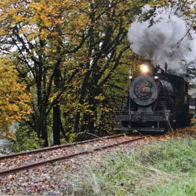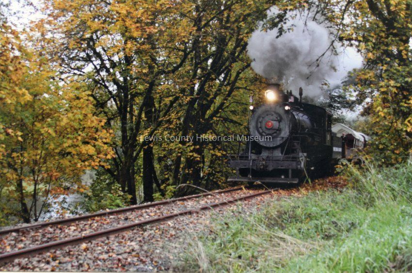 Centralia-Chehalis Steam Train engine on a passenger trip, October 23, 2011. Color print