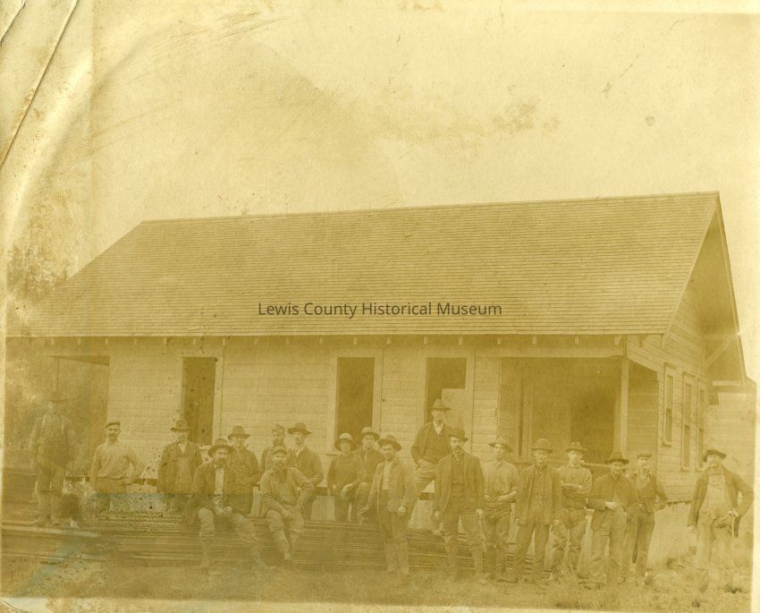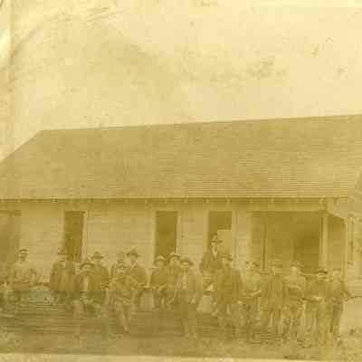 An unidentified group of men at an unknown house, probably in Centralia, WA. Came in with Archie Davis collection. b&w 2011.45