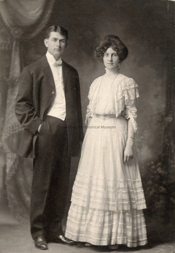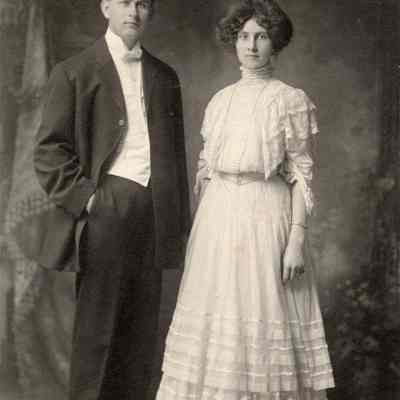 Wedding photo, tentatively identified as Henry McQuigg's parents, F. I. Hawkins Studio in Medina, Ohio. black and white photo on studio cardboard. 08.56.119Lexicon