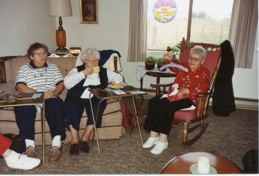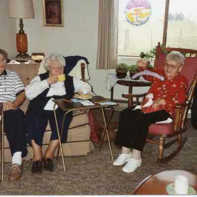 Agate Happy Hour Club L-R: Josephine Tauscher, Eva Shaver, Florentina Heck at Marie Louthan's, Jan 18, 1990.