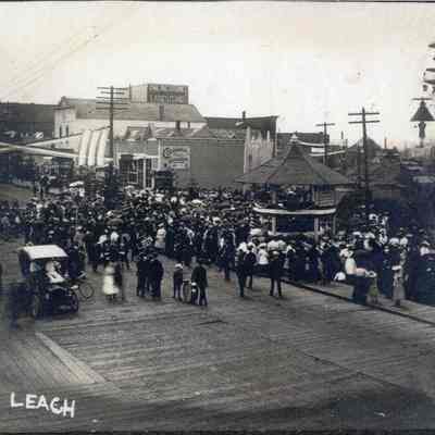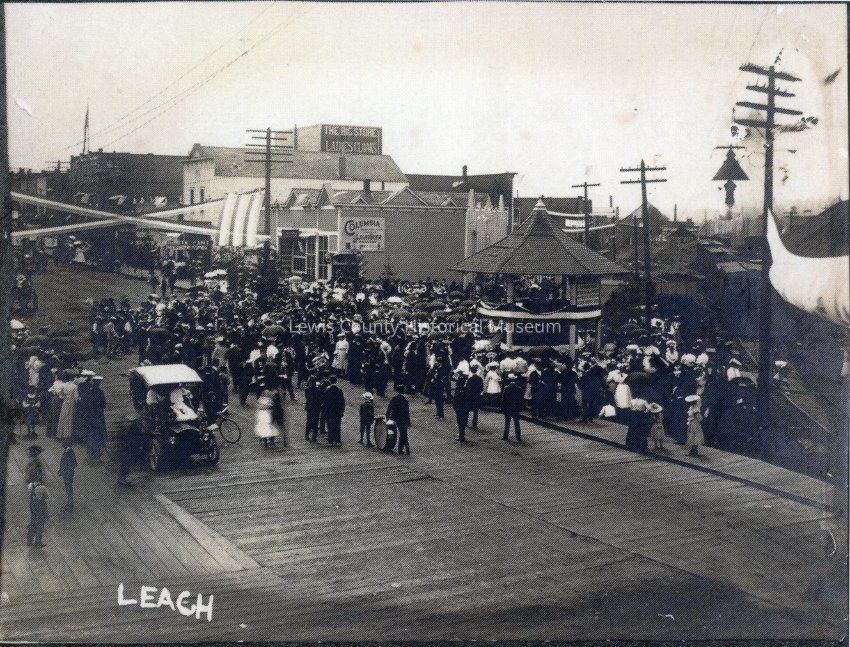Crowd gathering around the McKinley Stump in Chehalis, WA