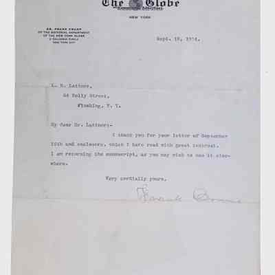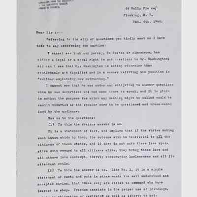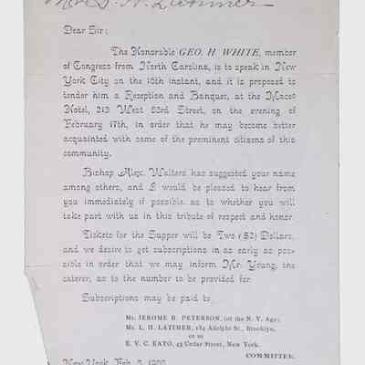 This folder contains miscellaneous correspondence and poetry between Lewis H. Latimer and several acquaintances and friends. Notably, it contains letters (and copies of letters) between Latimer and notable figures in early twentieth-century African American activism and public life, including Booker T. Washington, Emmett Scott, Rosamond Johnson, John Edward Bruce (“Bruce Grit”), George F. Grant, Samuel R. Scottron, and Richard T. Greener.Context