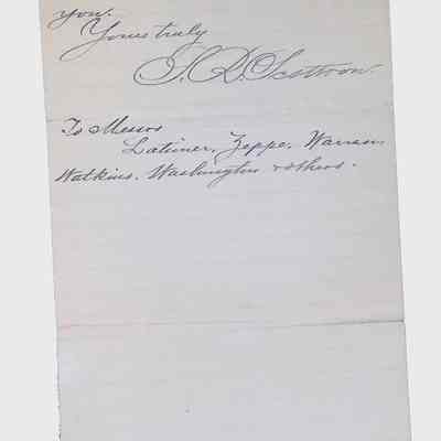 This folder contains a collection of letters, handwritten and typed documents, and envelopes related to the Latimer family. The materials date from the late 19th to early 20th century and include both personal and formal correspondence. Some documents appear to be official communications, while others include handwritten notes, petitions, and envelopes with postmarks.Collection