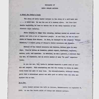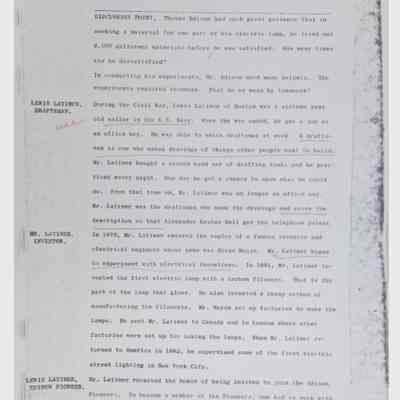 Latimer Family Papers (1870-1996 ) [QPL Full Collection], The Lewis H. Latimer Papers (1870-1929, 1972) [QPL Subgroup]Archive Items Details