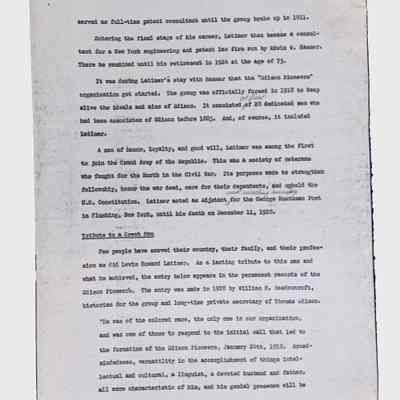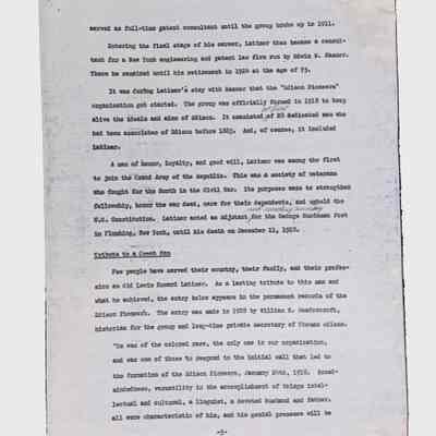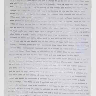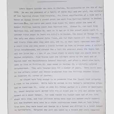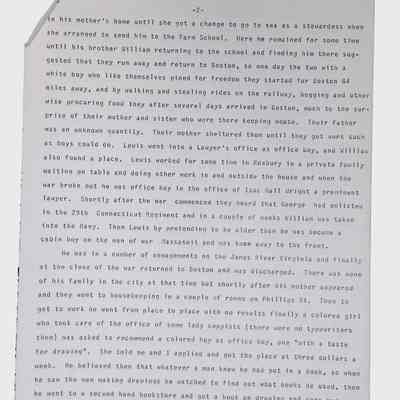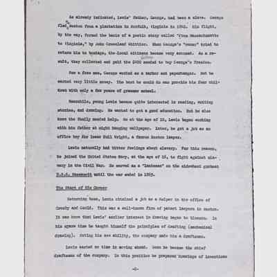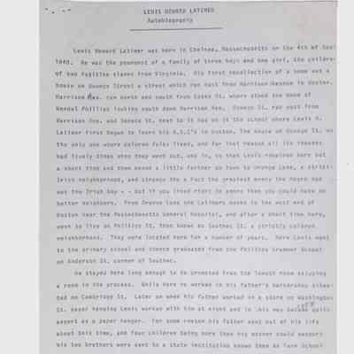 These documents, mostly xeroxes, typescripts, and clippings, appear to have been assembled by Lewis Latimer’s granddaughter Winifred Norman as she pieced together the story of Latimer’s life. They include photocopies of primary source documents that can be found in their original form elsewhere in the Latimer Papers, such as petitions, letters, and reports discussing voting rights, political appointments, and social justice issues. Also included is a xeroxed typescript of Norman’s short “Biography of Lewis Howard Latimer.”Context