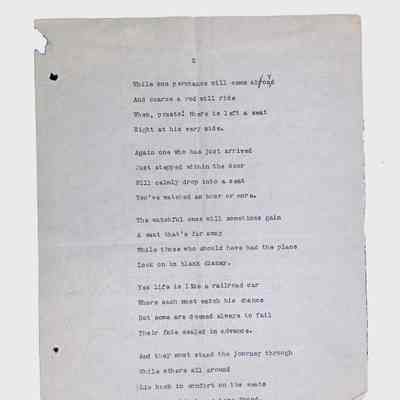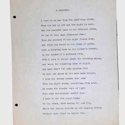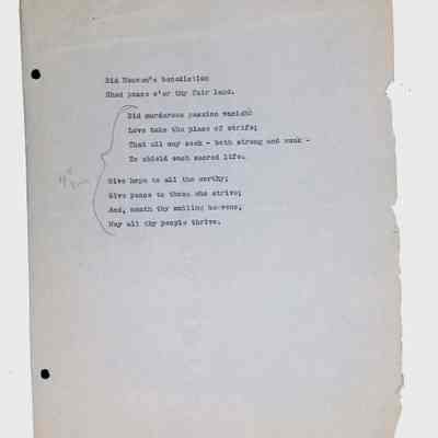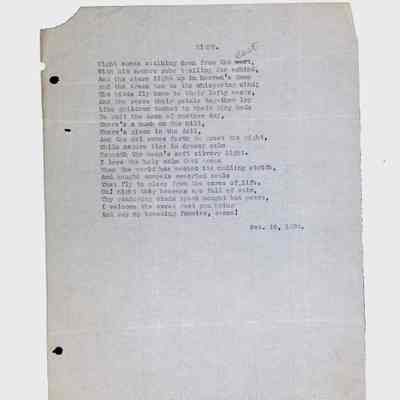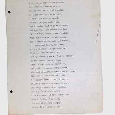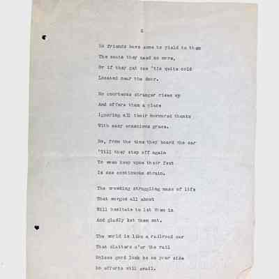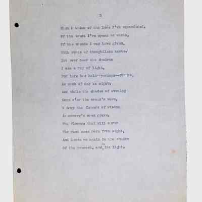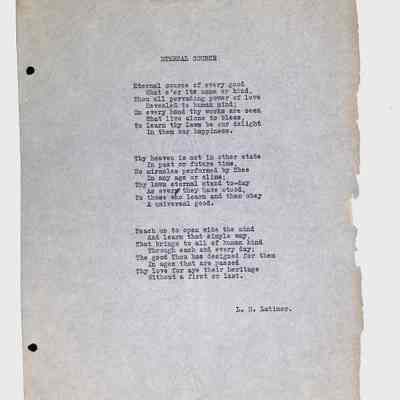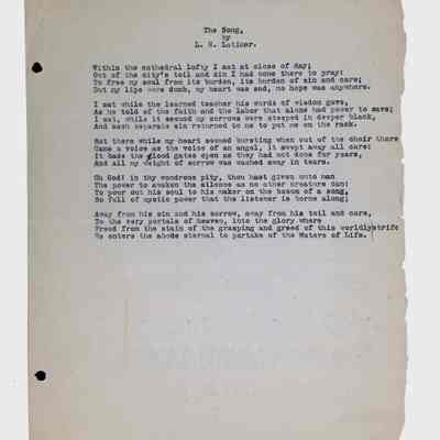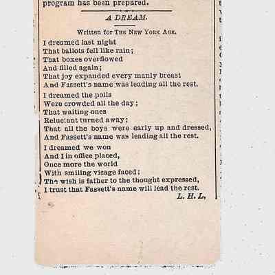 This folder contains original and copied writings by Lewis H. Latimer, including poetry, essays, and notes. Latimer was not only an inventor but also a talented writer and poet, expressing his thoughts on race, society, and personal reflections. The folder includes poems pertaining to African American life such as “Frederick Douglass” and “Cream White,” and a clipping of one of Latimer’s poem published in The New York Age, New York City’s African American newspaper.Collection