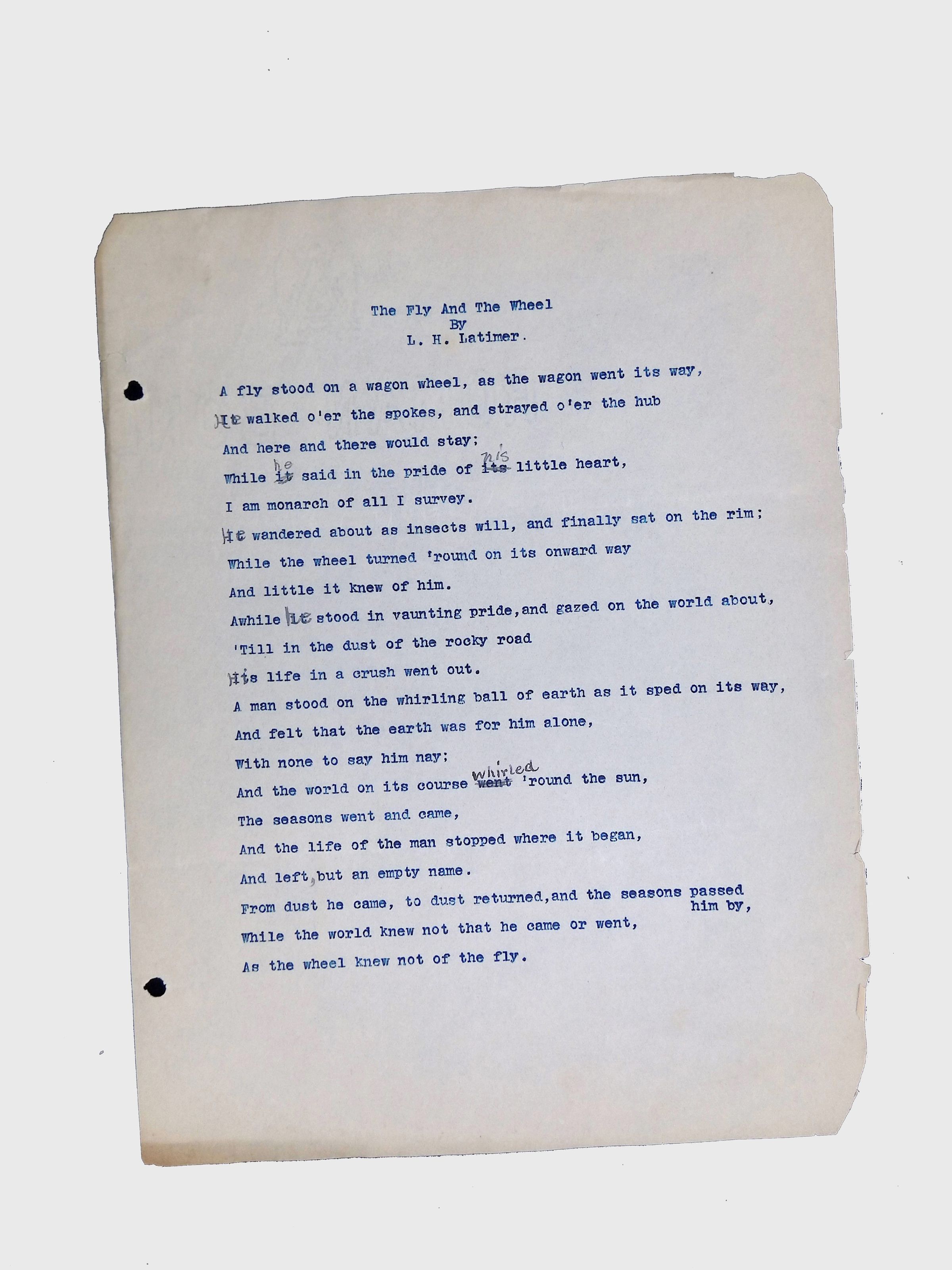 Documents show evidence of editorial marks and revisions, highlighting Latimer’s process of refining his work.Context