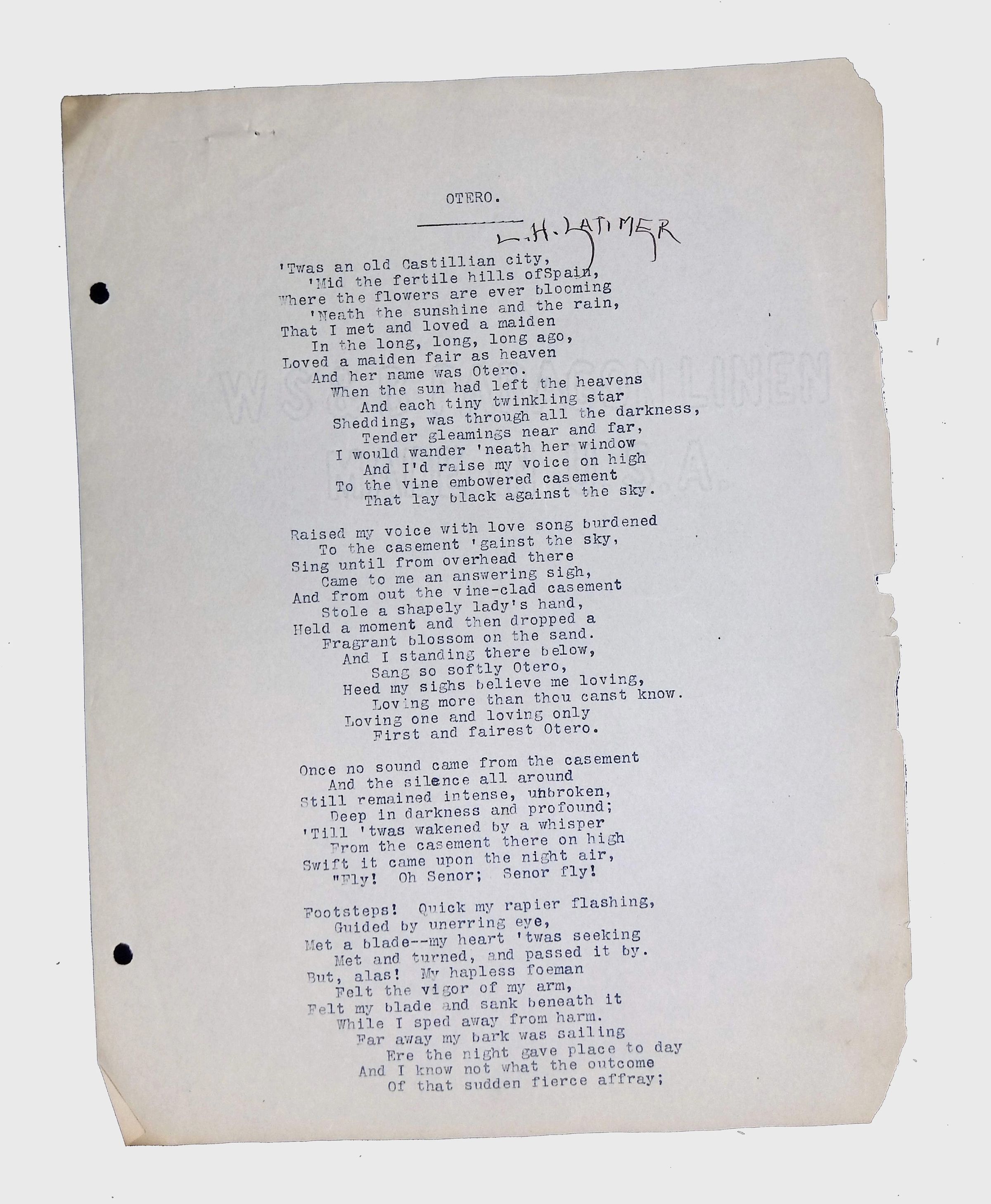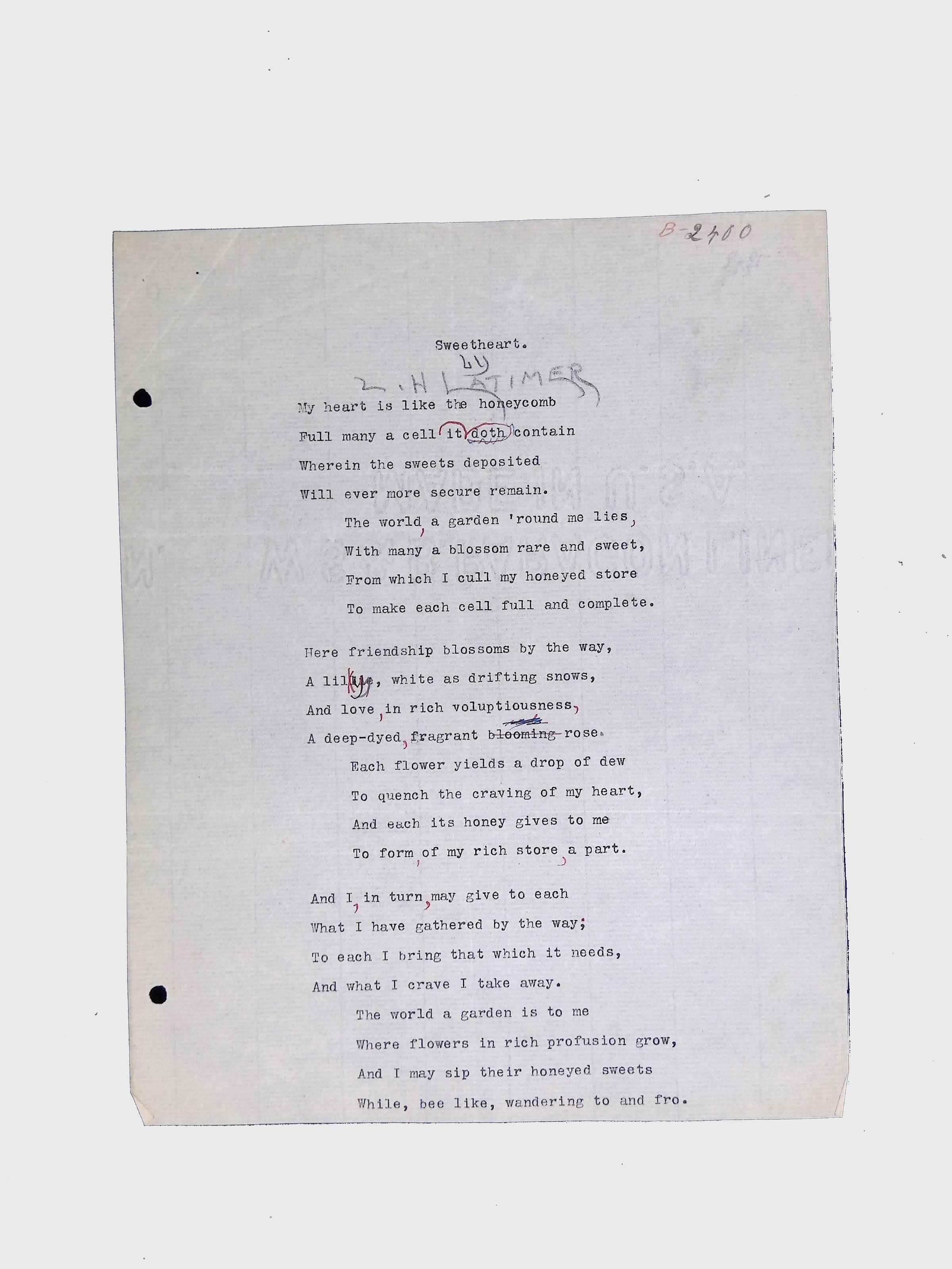 Handwritten and typed manuscripts of Latimer’s poetry.