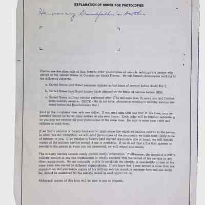 A filled-out widow’s pension application form, dated early 20th century, related to a military service pension claim. The document provides legal affirmations by the widow regarding her late husband's service, marital history, and eligibility for benefits.Collection