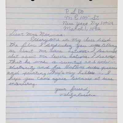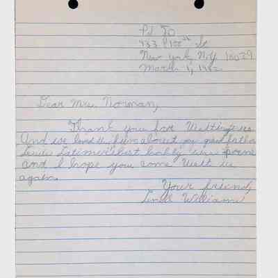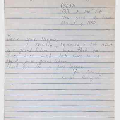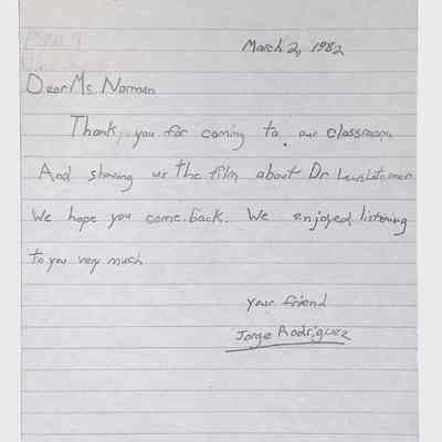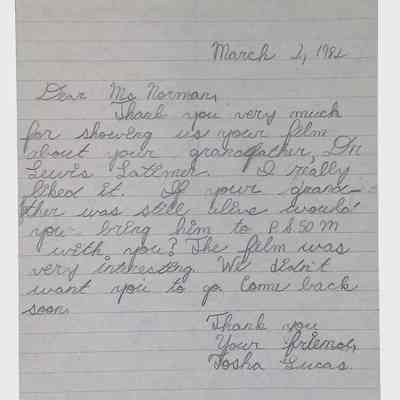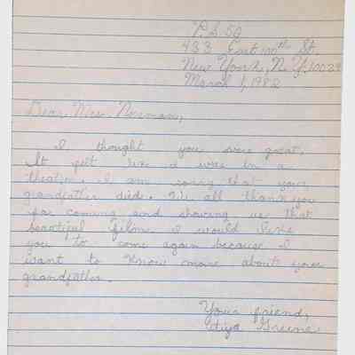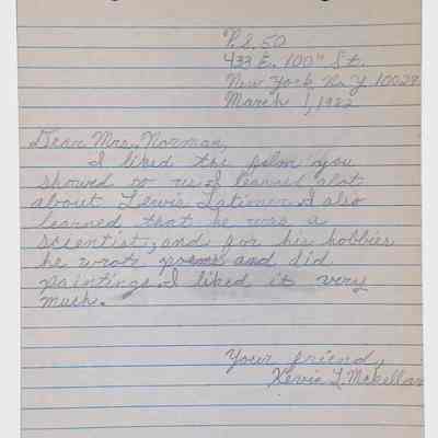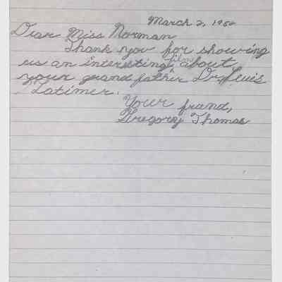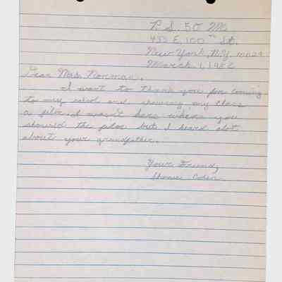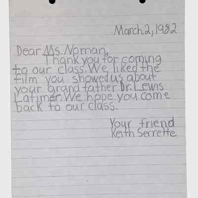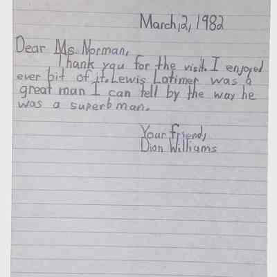 A collection of letters from an assistant principal and several schoolchildren thanking Winifred Norman, Lewis Latimer’s granddaughter, for making a classroom presentation on the life and work of Lewis Latimer at Public School 50 in East Harlem in 1982.Context