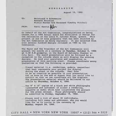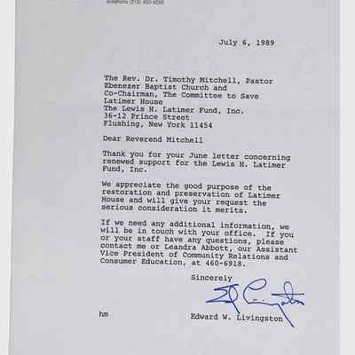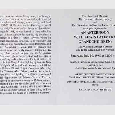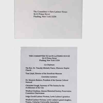 Documents relating to the Committee to Save the Latimer House, the group spearheaded by Winifred Norman and others to save 64 Holly Street—the former home of Lewis Latimer and his family in Flushing, Queens—at a time when its demolition seemed imminent. Their campaign helped lead to the recognition of the Latimer House as a historic resource and its relocation to its present site. This folder is a valuable resource for understanding the historical impact of Lewis Latimer and the continued efforts to recognize his contributions to technology and African American history. The materials highlight the role of local and national organizations in preserving and celebrating Latimer’s achievements.Location