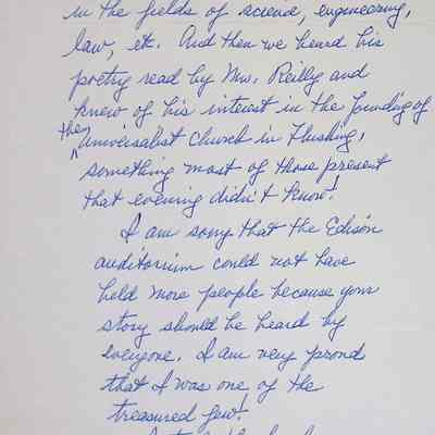 Handwritten Letters and printed and handwritten documents relating to Winifred Norman’s ongoing efforts to publicly honor the memory and legacy of her grandfather Lewis H. Latimer, mostly including materials relating to a program honoring Latimer during Black History Month, February 1984, at the Edison National Historic Site in West Orange, New Jersey. Multiple pages of personal handwritten notes, possibly family correspondence or reflections.