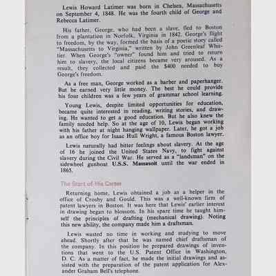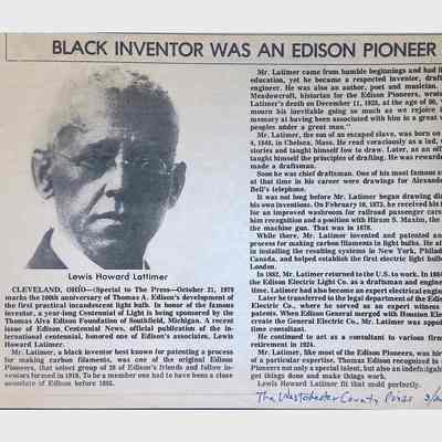 Newspaper Articles and Periodicals on Lewis Howard LatimerDescription