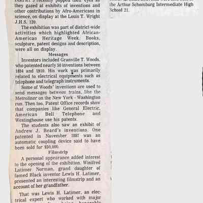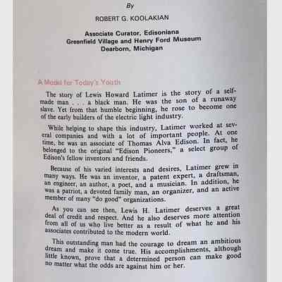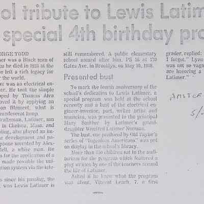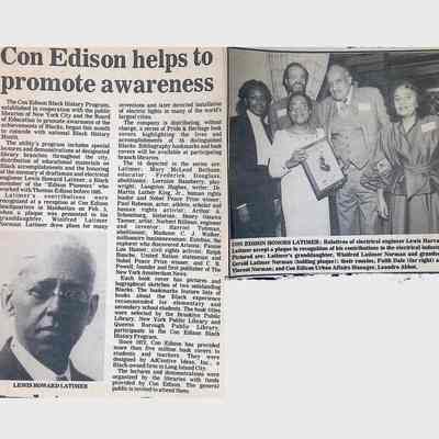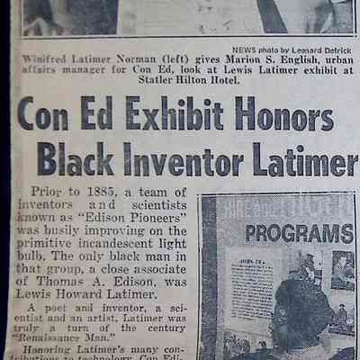 This folder contains a curated collection of newspaper articles, magazine features, and periodicals covering the life, achievements, and legacy of Lewis Howard Latimer. These materials were collected by—and shed light on the activities of—Latimer’s granddaughter, Winifred Norman, as she worked to preserve and publicize his achievements. The materials span different decades and publications, offering a broad perspective on how Latimer’s contributions to electrical engineering and African American history have been recognized over time.Collection