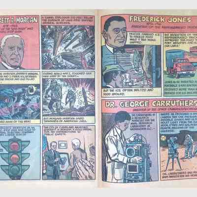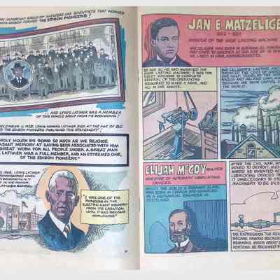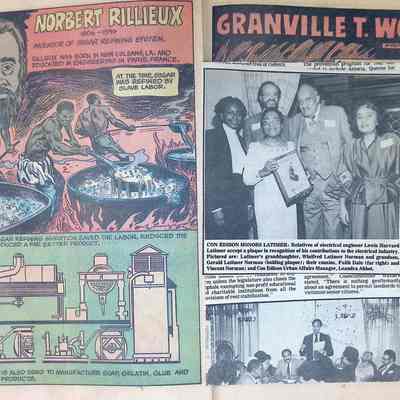 Newspaper clippings and magazine excerpts featuring Latimer’s biography and inventions.