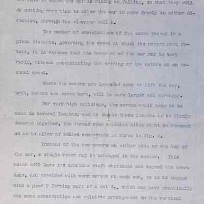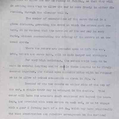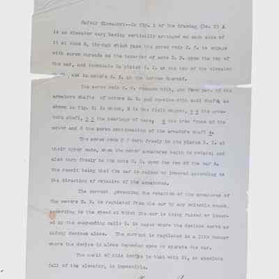 This folder contains typed and handwritten documents related to Lewis Howard Latimer’s professional and personal correspondence, notably including a typescript describing Latimer’s invention of a “Safety Electric Elevator,” signed by “L. H. Latimer, inventor.” Drawings by Latimer illustrating this plan for a system to prevent elevators from “free falling” can be found elsewhere in the collection. Latimer never patented this system, but his interest in improving elevator safety dated back to the early 1880s. .Context