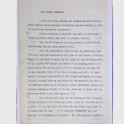 Self Oiling Bearings, (1 folder, ca. 1890)Scope and Content