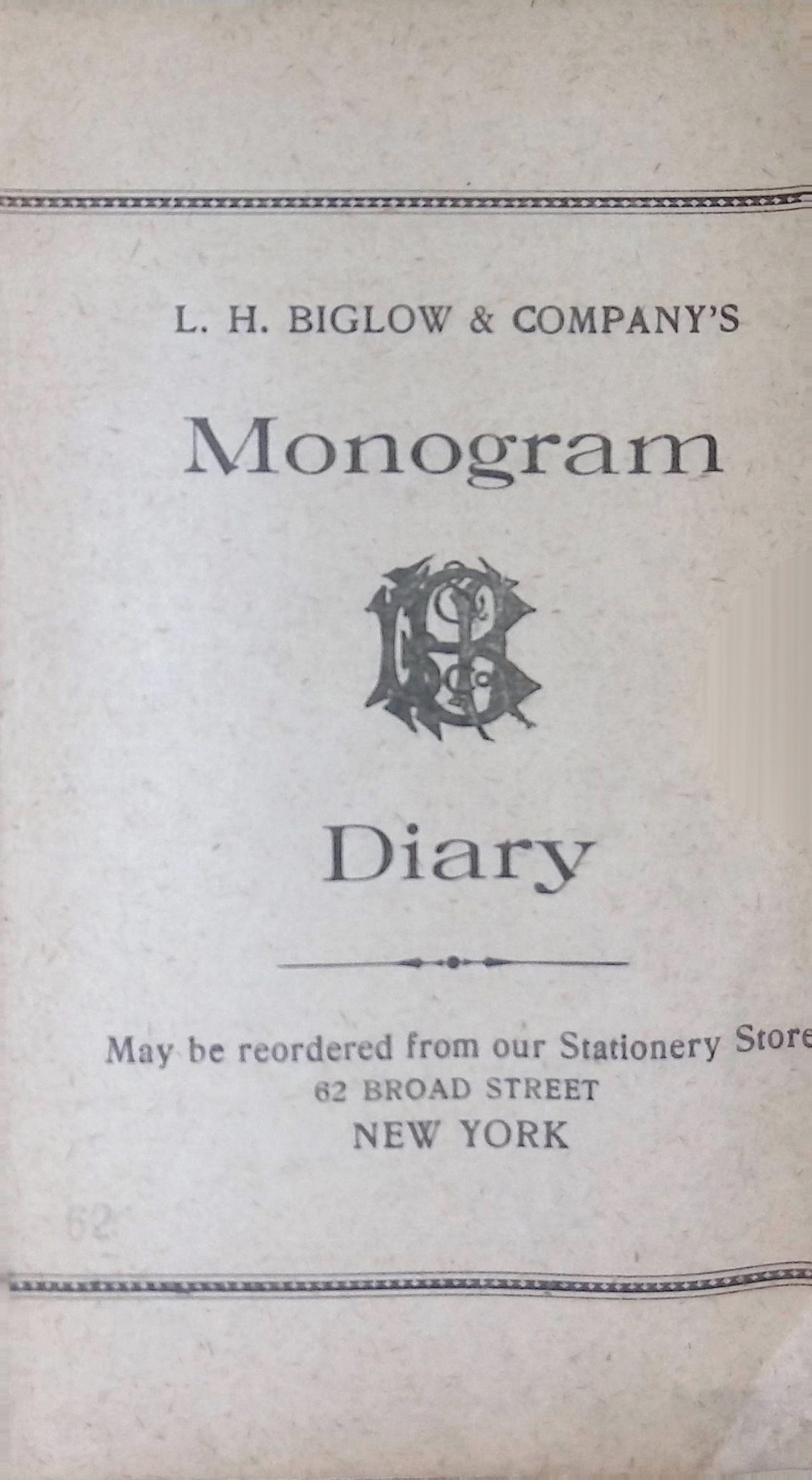 A cloth-bound book titled Monogram Diary, possibly from a specific year.