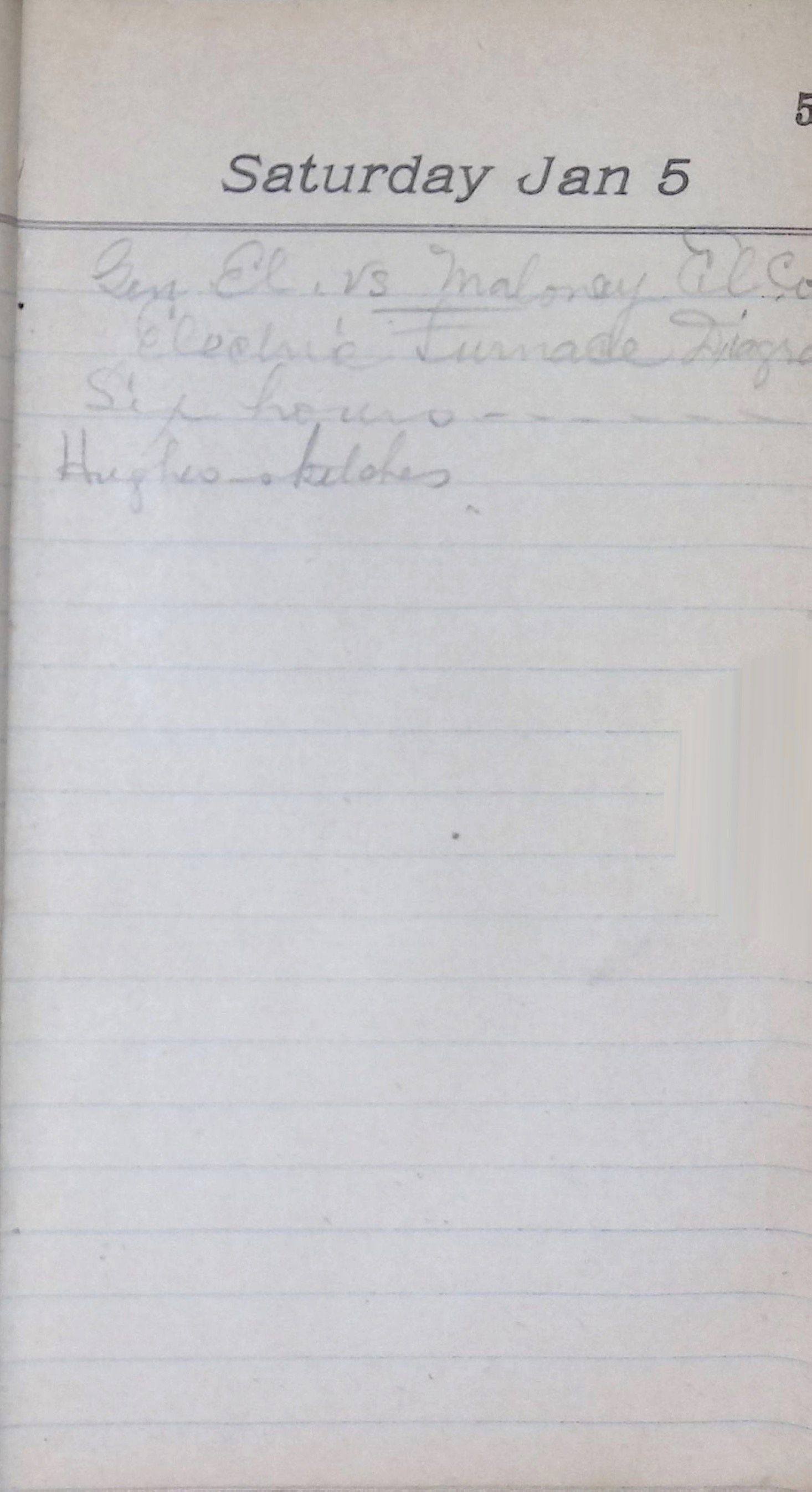 This folder contains a cloth-bound monogram diary with handwritten entries scattered across various dates. The book appears to have been used sporadically for personal notes, reflections, or professional records, with many blank pages between entries. This item provides a rare glimpse into the personal and intellectual life of Lewis H. Latimer, offering insight into his habits, thoughts, or activities in an irregularly maintained format.Container