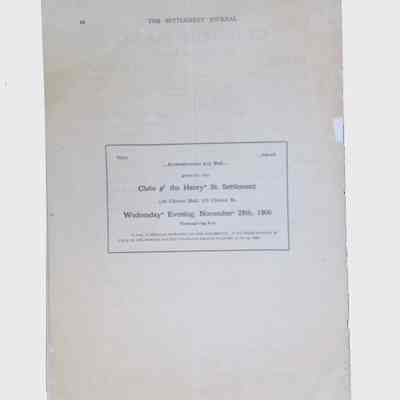 This file contains a selection of printed materials related to social settlements, community activism, and historical documentation. The materials provide insight into the Latimer family's involvement with community organizations and their engagement with social issues of the time.Collection