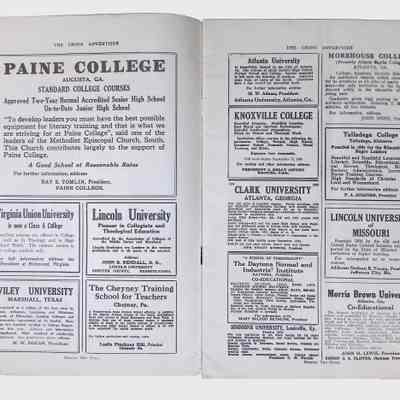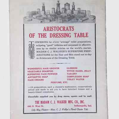 Advertisements featuring Black-owned businesses and products marketed toward African American consumers.