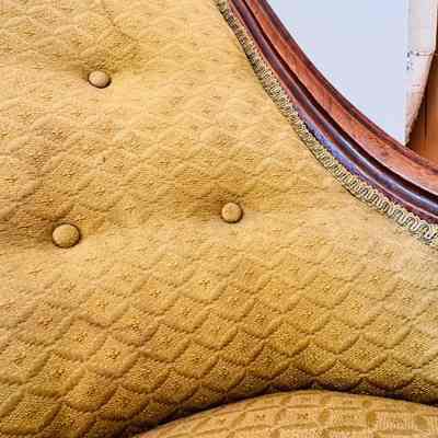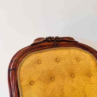 This ornate armchair, once belonging to Lewis Latimer, is crafted from wood and features a hand-carved floral motif on the crest rail. The upholstery is a mustard-gold fabric with a delicate diamond pattern, secured by button tufting along the backrest. The armchair's legs are carved and mounted on castors, enabling easy movement. The piece showcases Latimer's taste for elegant and functional home furnishings, reflecting the aesthetic sensibilities of the Victorian era.Use