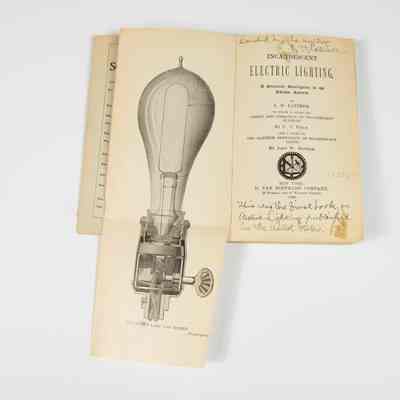 In 1890 Latimer wrote a revised and updated version of a book, Incandescent Electric Lighting: A Practical Description of the Edison System, first published in 1881. On the title page of this copy he wrote, “This was the first book on Electric Lighting published in the United States.” Latimer may have known William E. Sawyer, another electrical inventor, former Maxim associate, and author of the book’s first edition.