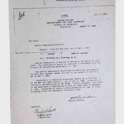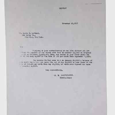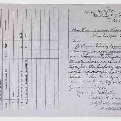 Content Overview: From the images provided, this folder includes: Pension Fund Documents, Government or corporate pension-related paperwork, possibly tracking Latimer’s contributions, eligibility, and disbursements. Some documents feature stamps and official seals, suggesting correspondence with pension boards or former employers. Financial Correspondence Letters regarding pension inquiries, payments, or disputes, which may reflect Latimer’s interactions with financial institutions or employer pension offices. Some pages contain marginal handwritten notes, indicating personal annotations or responses. Ledgers & Calculations Handwritten records of financial calculations, possibly tracking pension disbursements, savings, or expenses. Some documents appear to list names or figures, which may be payment schedules or financial statements. Legal or Administrative Filings Forms and official letters that may detail Latimer’s pension eligibility, employer contributions, and payout details. Documents covering posthumous claims (since the records extend to 1932), possibly filed by Latimer’s family after his passing in 1928.Context