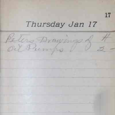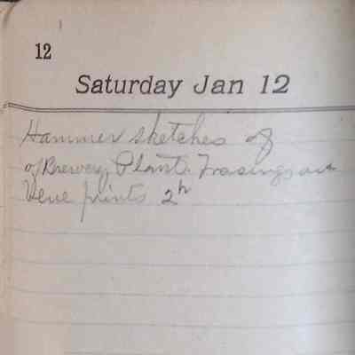 This folder contains a single bound book, possibly a personal diary or notebook, with sporadic handwritten entries among many blank pages. The structure suggests that the book was not used consistently but instead opened at random for occasional notes or reflections. In it Latimer jotted down brief information, probably indicating the details and time spent on various freelance projects that he worked on for income during the latter years of his career.