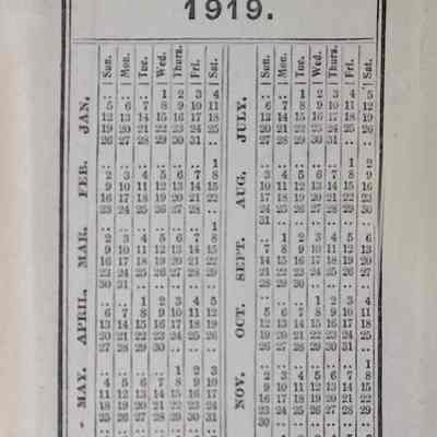 A calendar reference page, indicating it may have been intended for daily use.