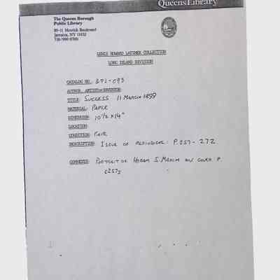 This folder contains archival documents related to Lewis H. Latimer, including news clippings, letters, periodicals, technical documents, and books. The materials span topics such as Latimer’s contributions to electric lighting, personal correspondence, and contemporary media coverage of his work. Notable items in this folder include: A photocopy of the cover of an issue of Success Magazine, March 11, 1899, featuring a cover image of Hiram S. Maxim. 1876 book titled La Lumière by M. Moitessier, stamped by the Queens Borough Public Library. Lecture booklet detailing art and architecture lectures, possibly related to Latimer’s intellectual interests. Condition varies, with some documents showing signs of age-related wear and annotations.Context