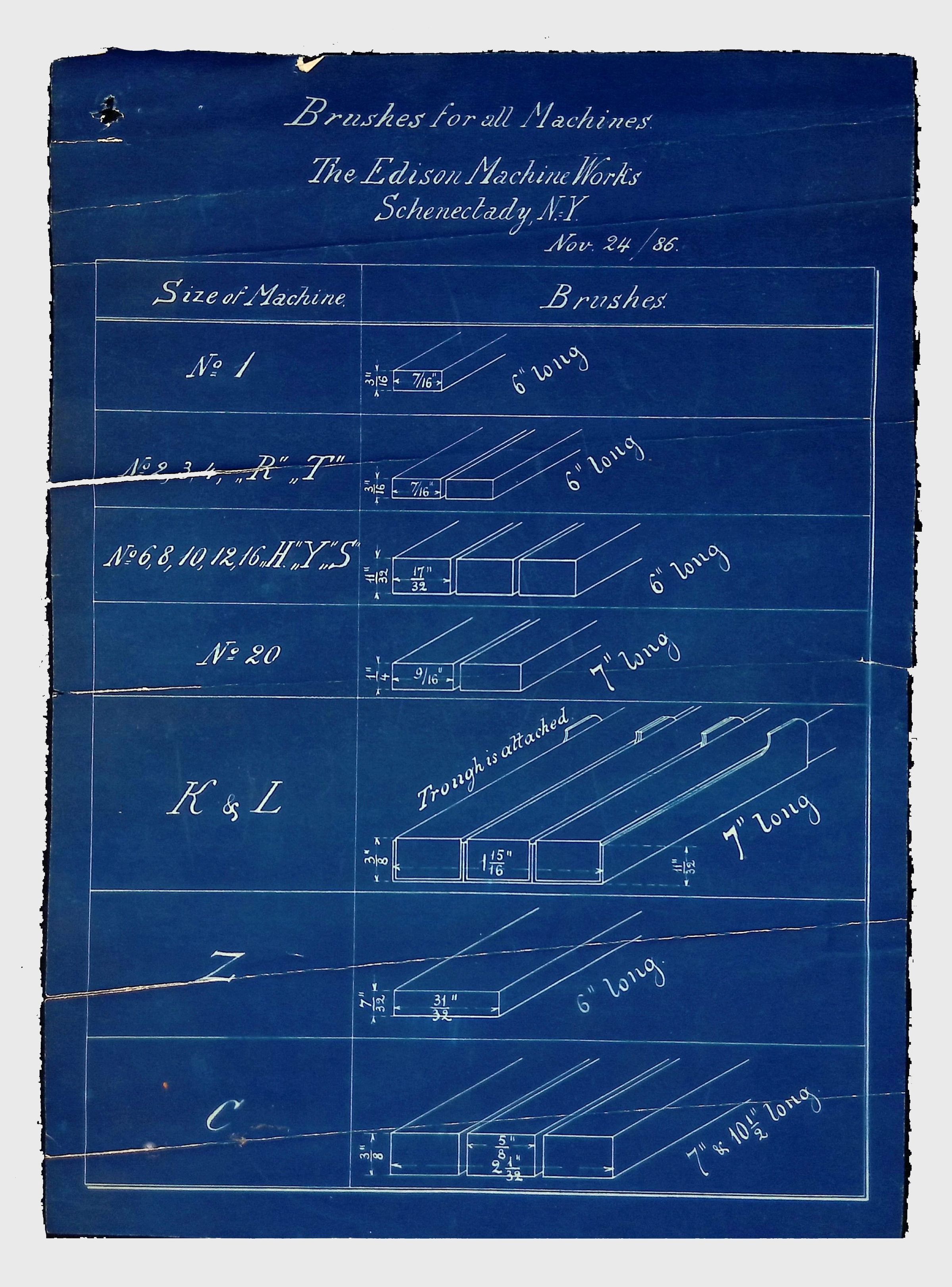 Blueprints, The Edison Machine Works, Schenectady, N.Y., and Brushes for All MachinesContext