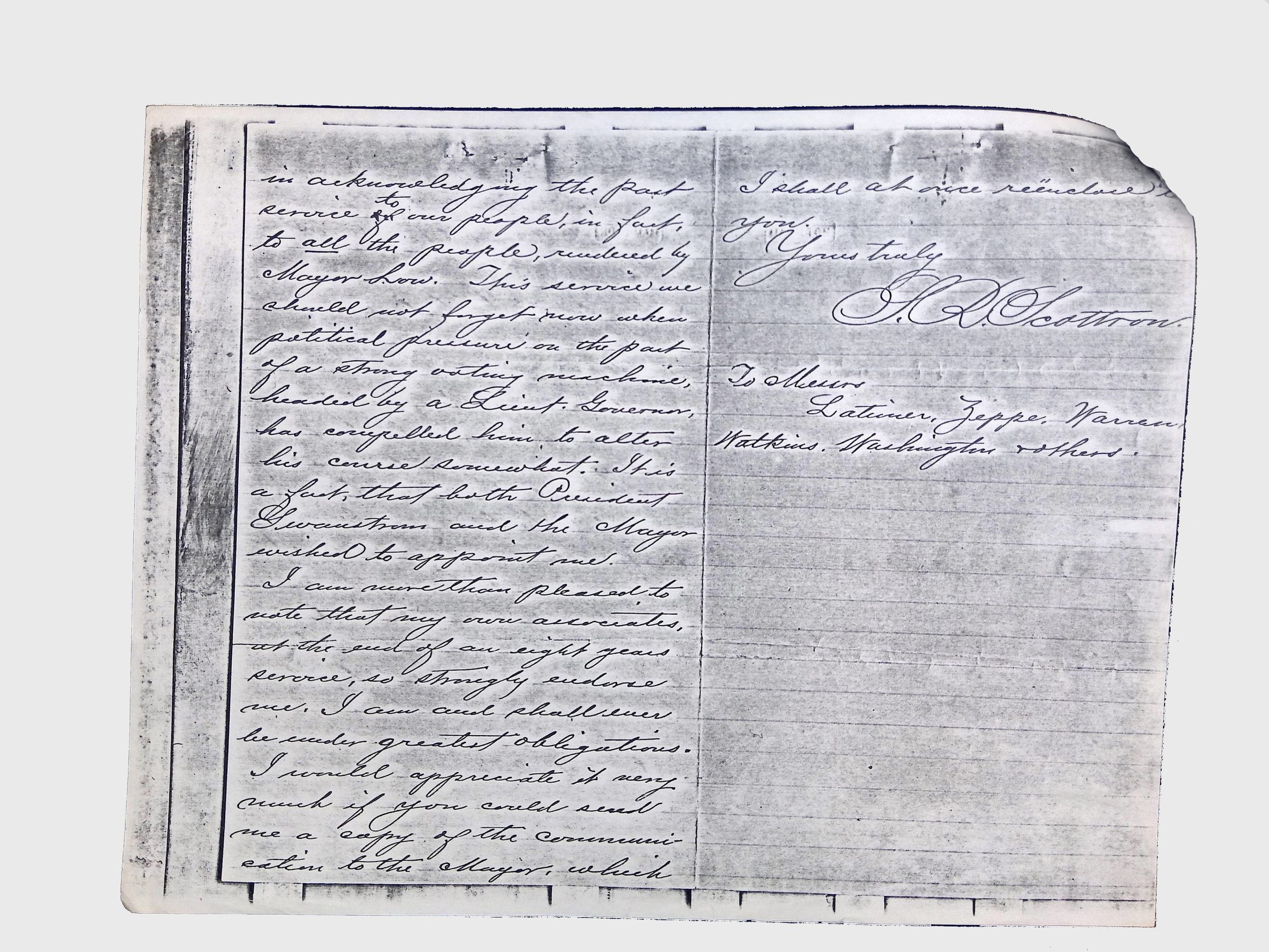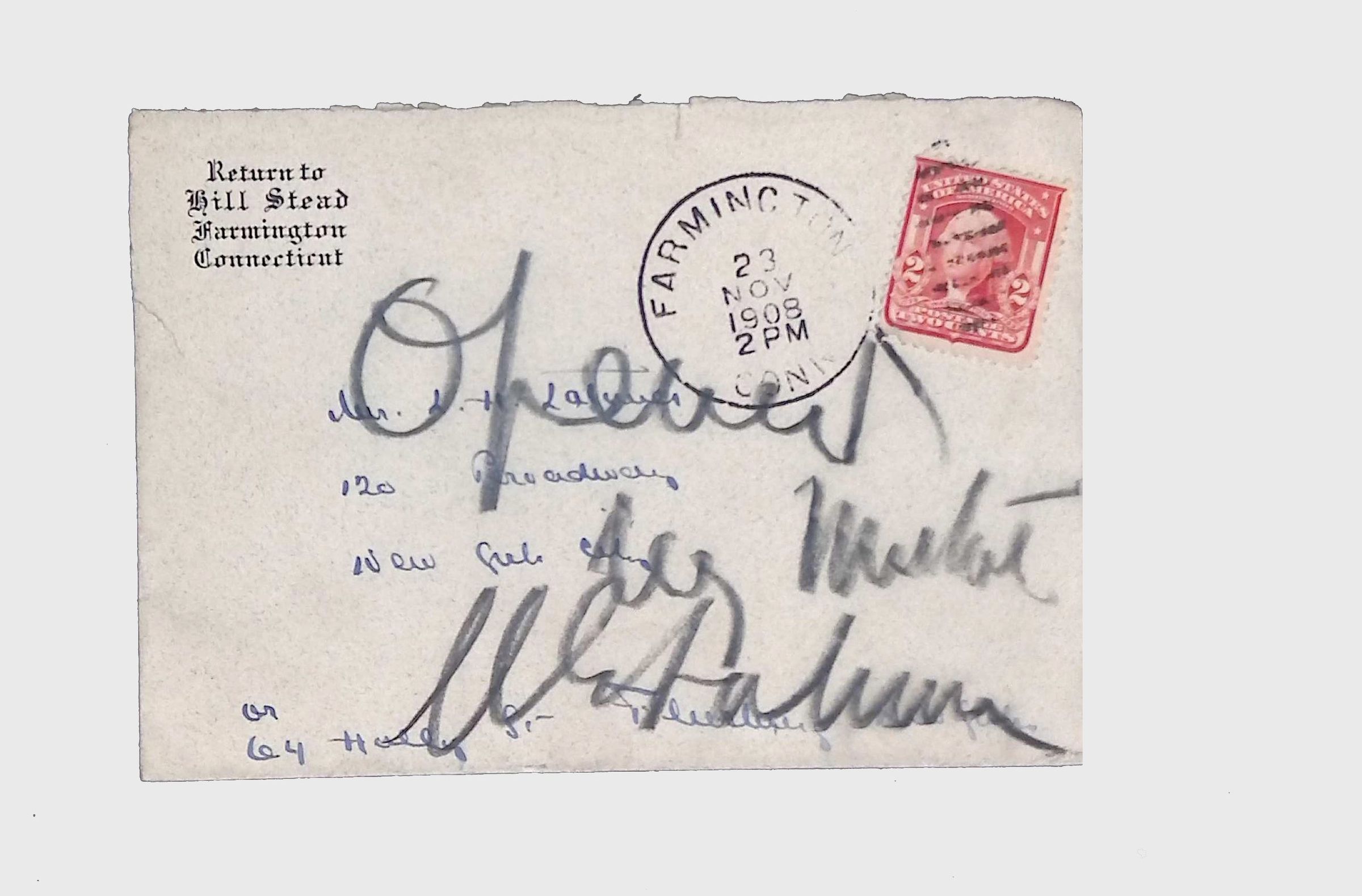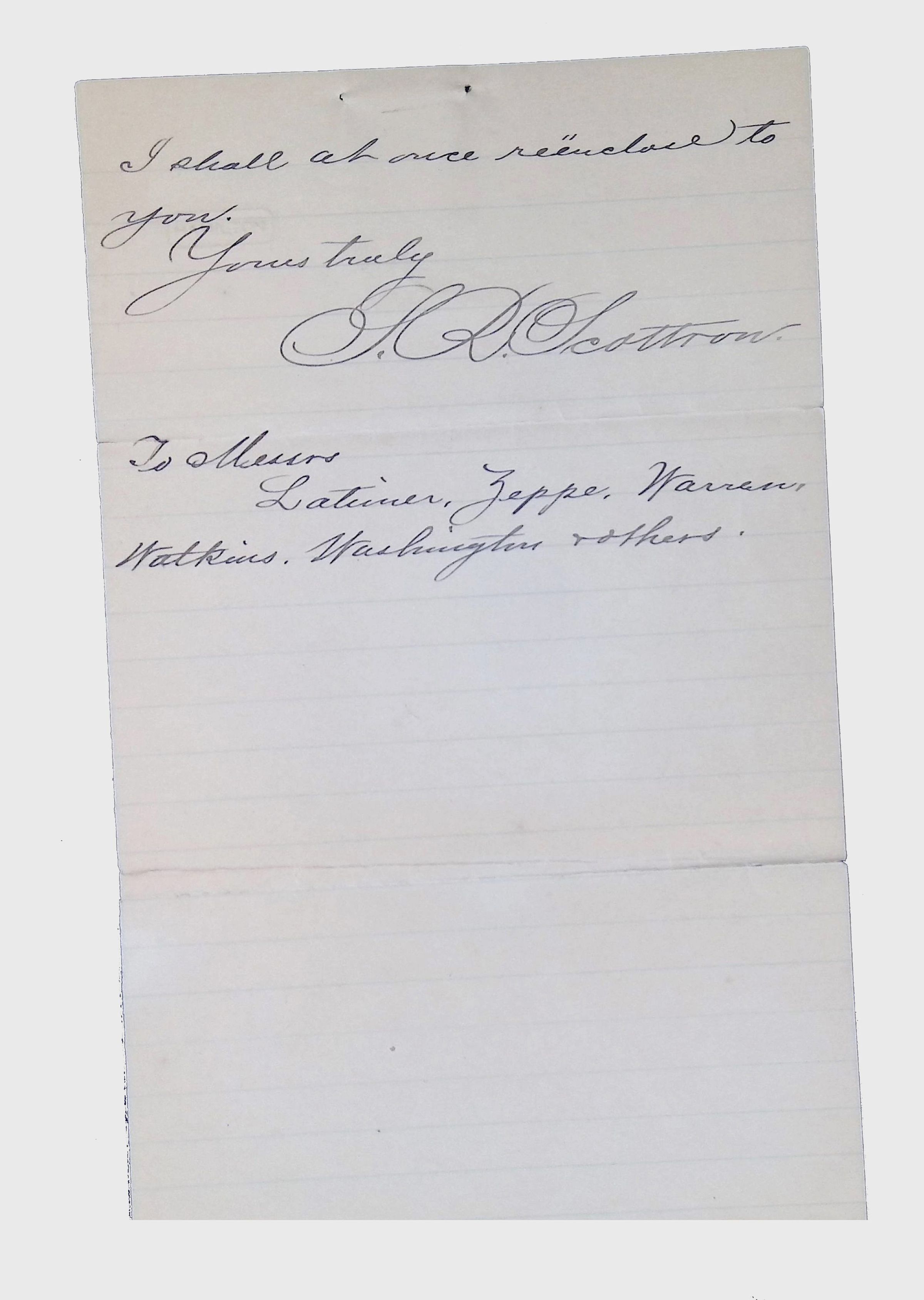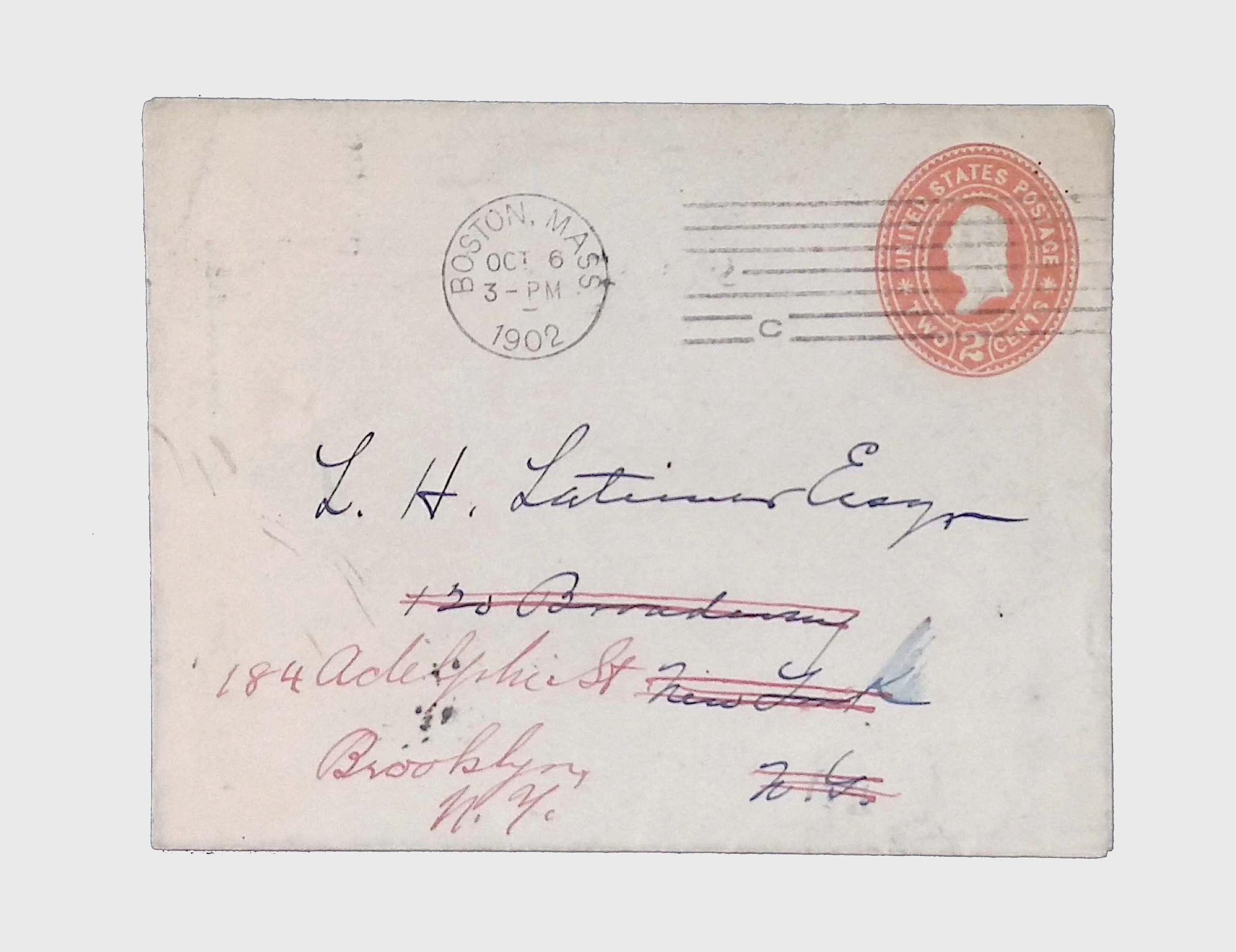 This folder contains a collection of letters, handwritten and typed documents, and envelopes related to the Latimer family. The materials date from the late 19th to early 20th century and include both personal and formal correspondence. Some documents appear to be official communications, while others include handwritten notes, petitions, and envelopes with postmarks.Collection