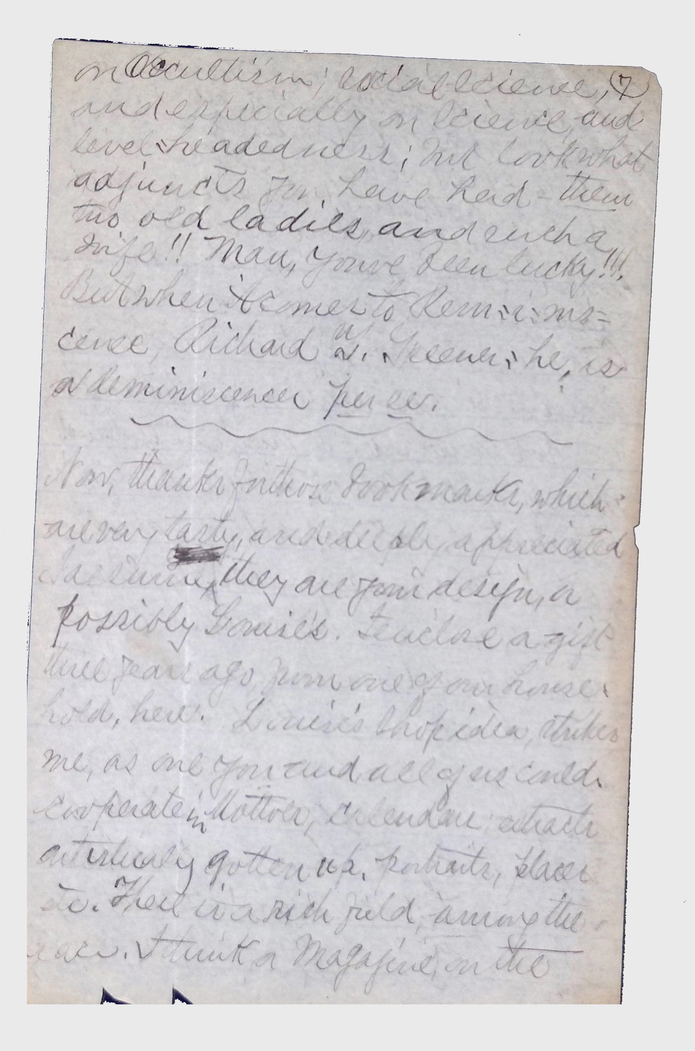 Personal correspondence from Latimer’s friend Richard T. Greener discussing shared memories and intellectual reflections.Collection