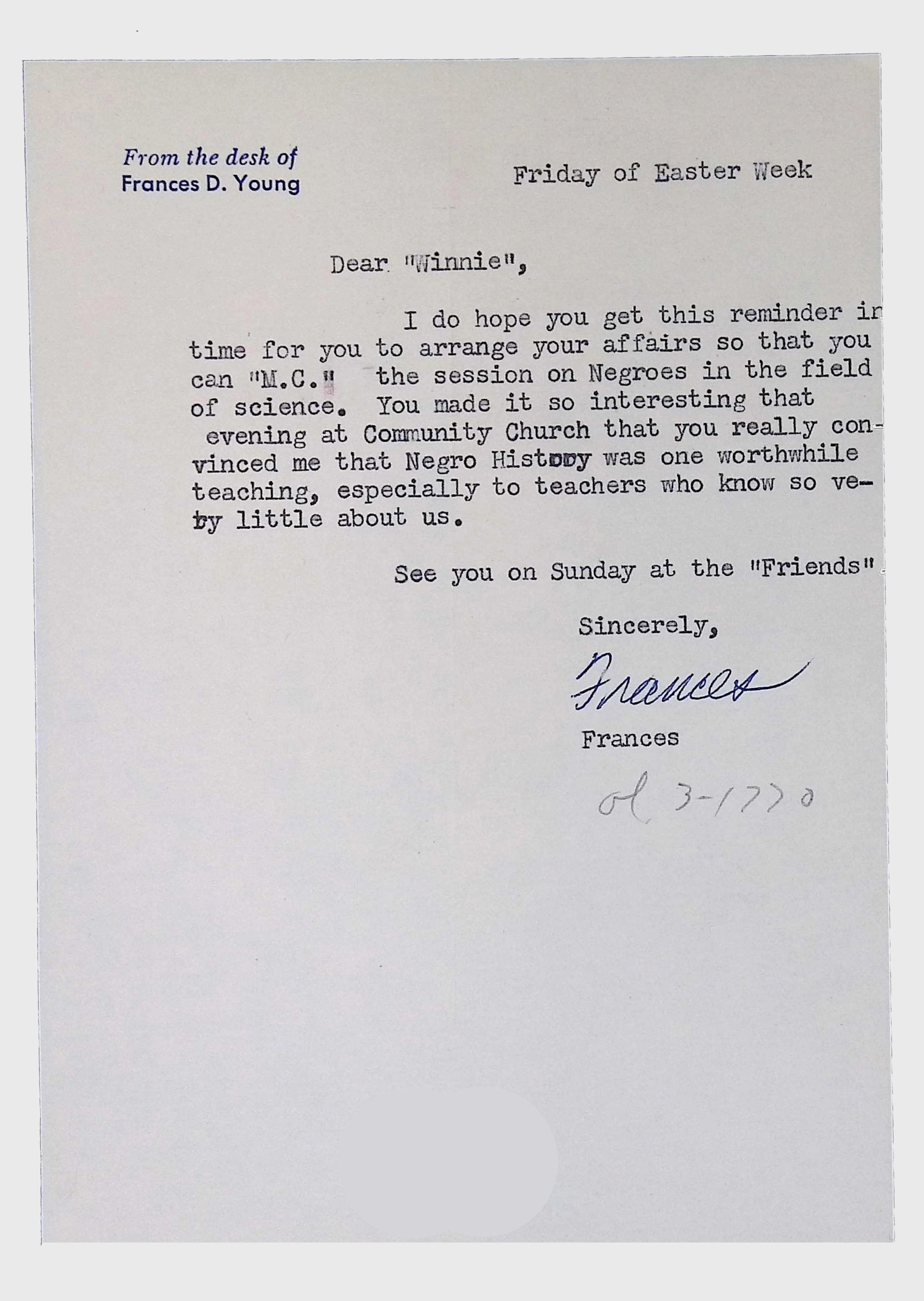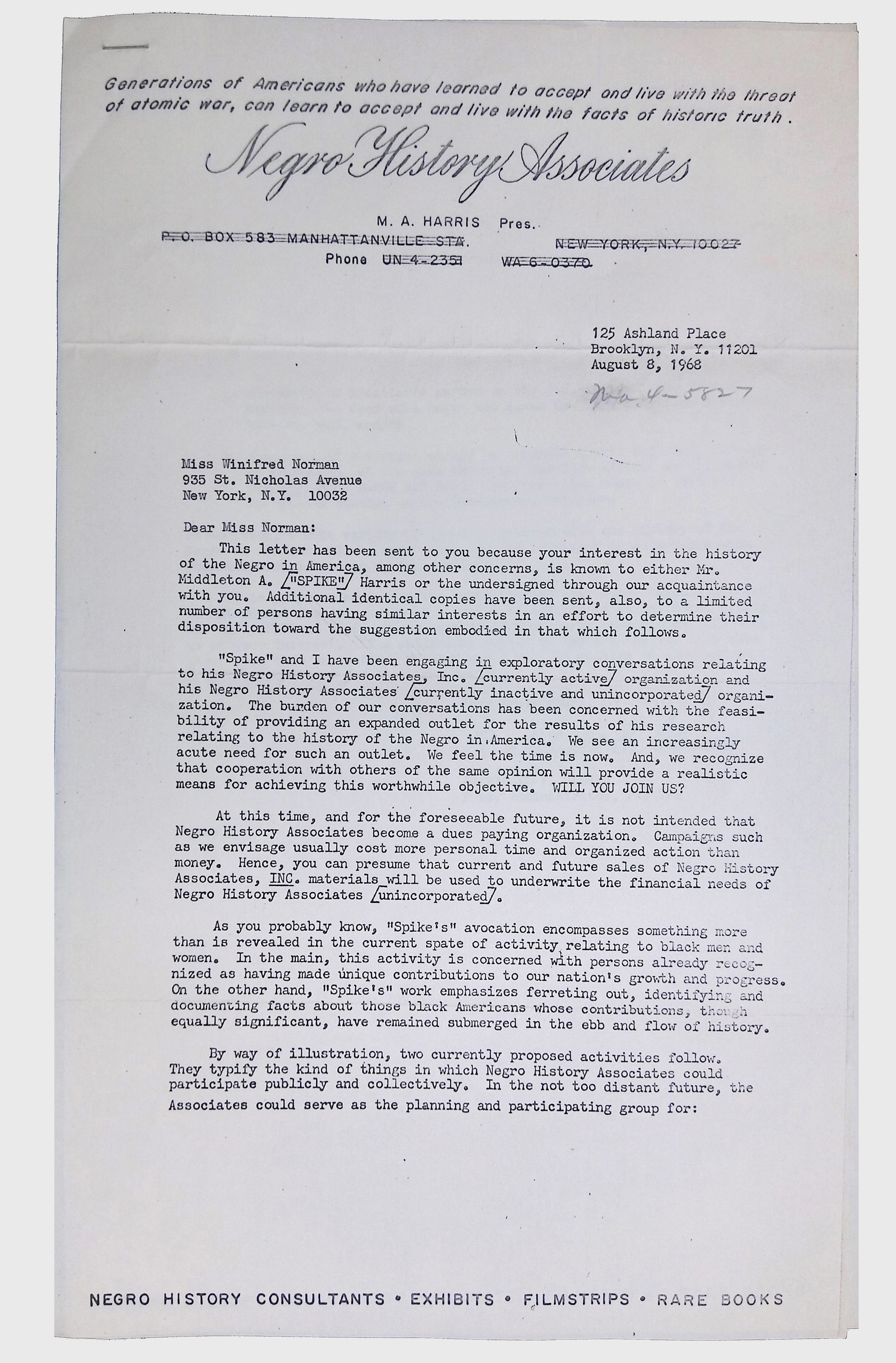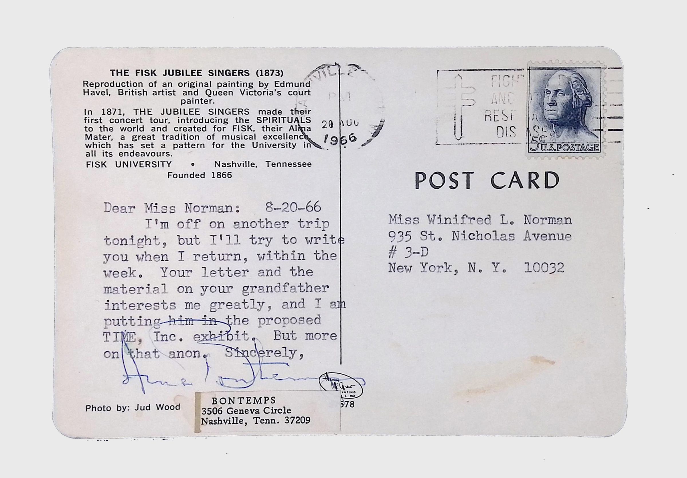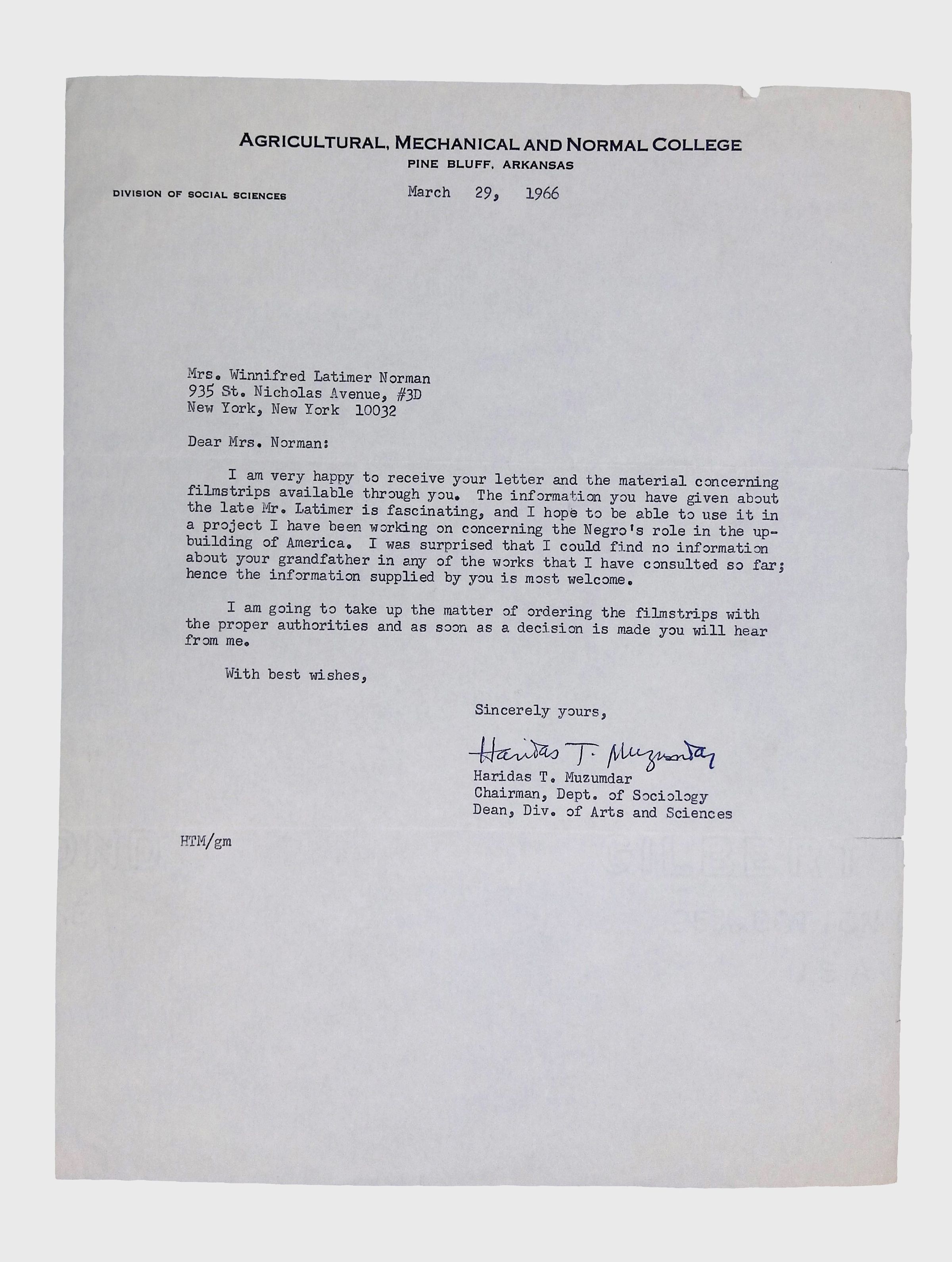 This folder contains correspondence, most or all of it belonging to Lewis Latimer’s granddaughter Winifred Norman, who worked tirelessly to recognize and honor Latimer’s achievements. Notable correspondents include the Harlem writer Arna Bontemps and Senator Robert F. Kennedy. Other letters document the creation of a sculptural bust of Lewis Latimer and other historical Black figures, and the recollections of George A. Latimer, Lewis Latimer’s nephew (although this should be used with caution since the writer erroneously states that his own father, Lewis’s brother George Latimer, Jr., was born in London).Context