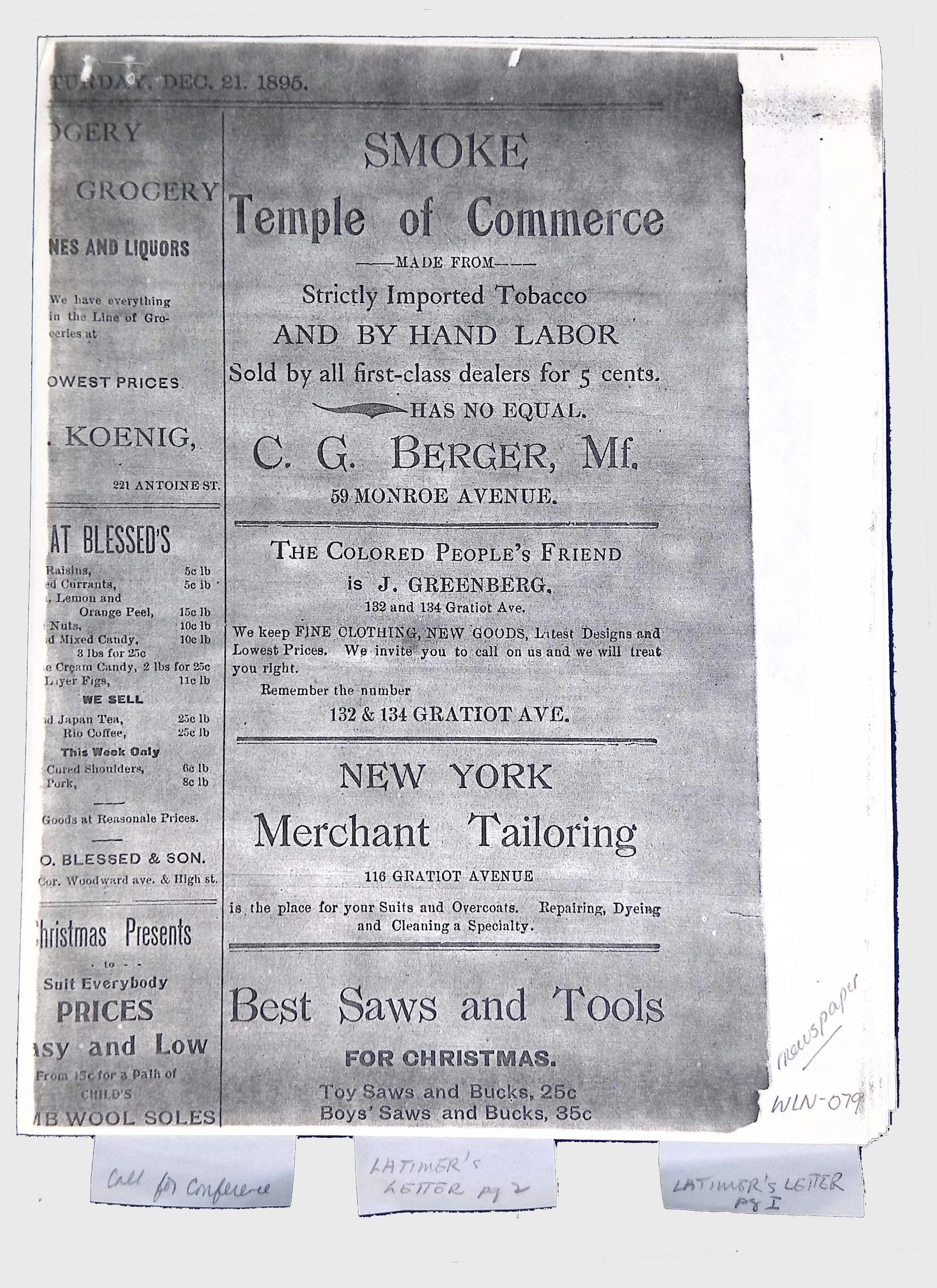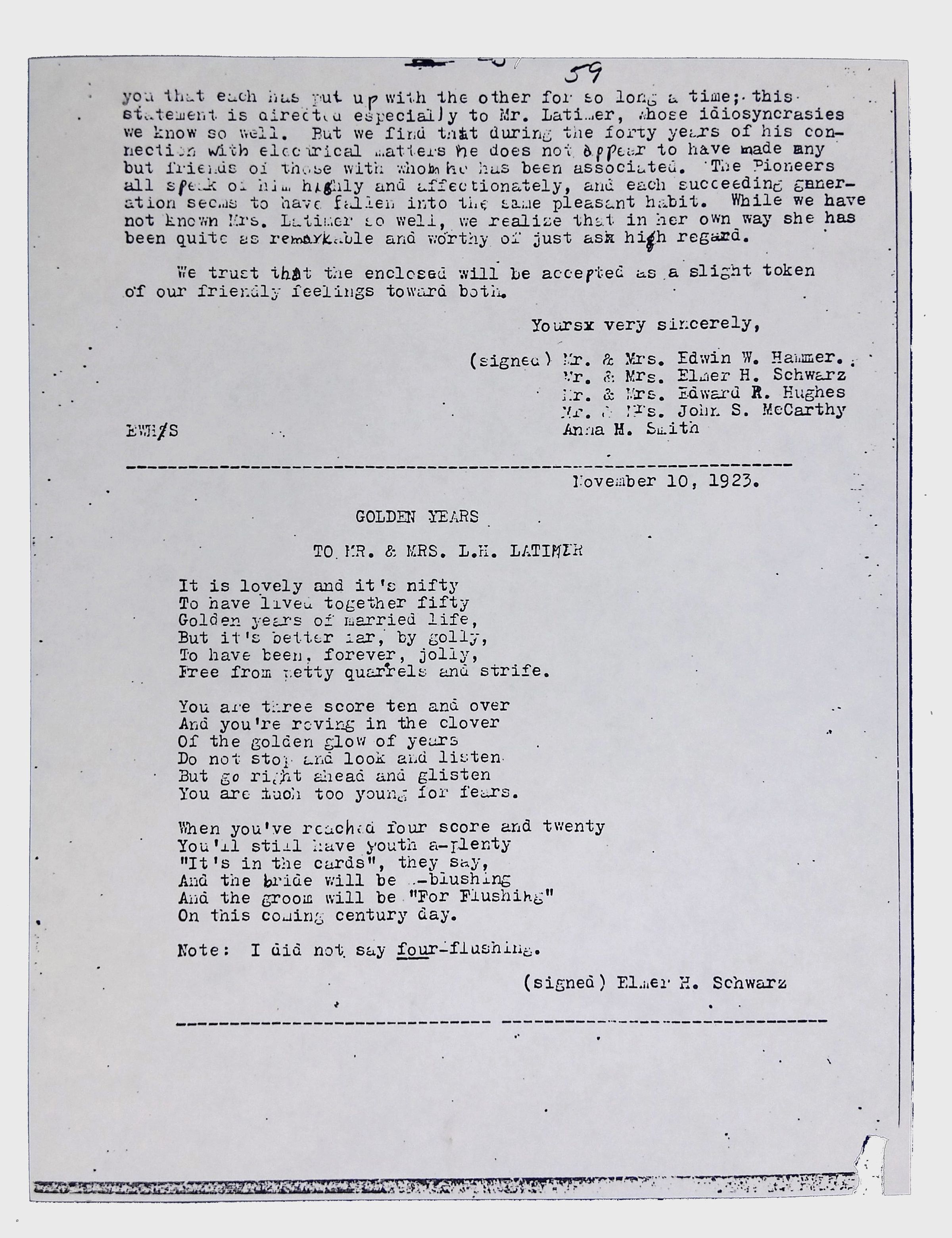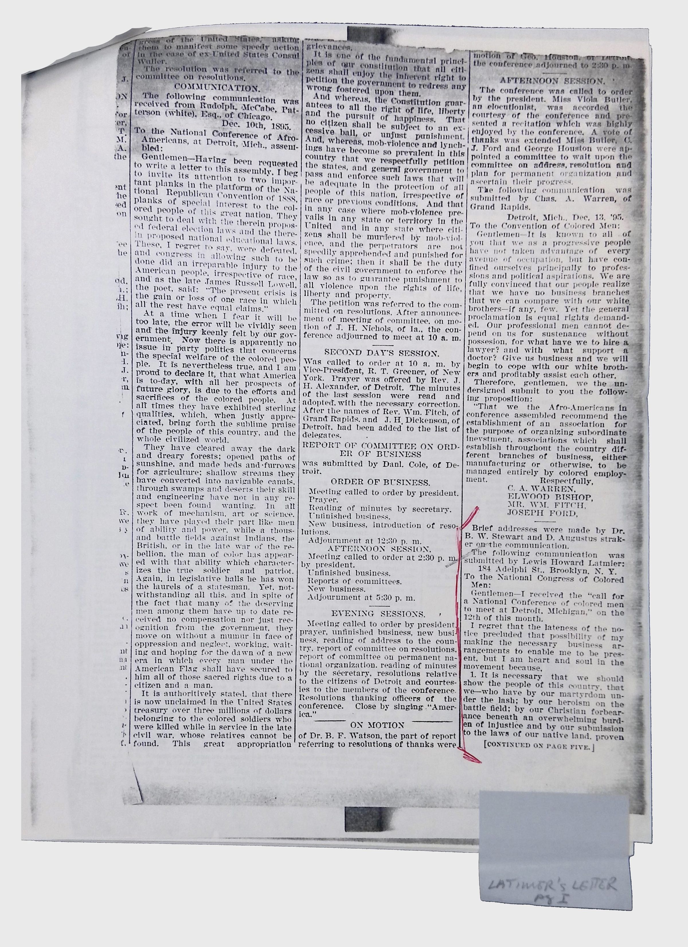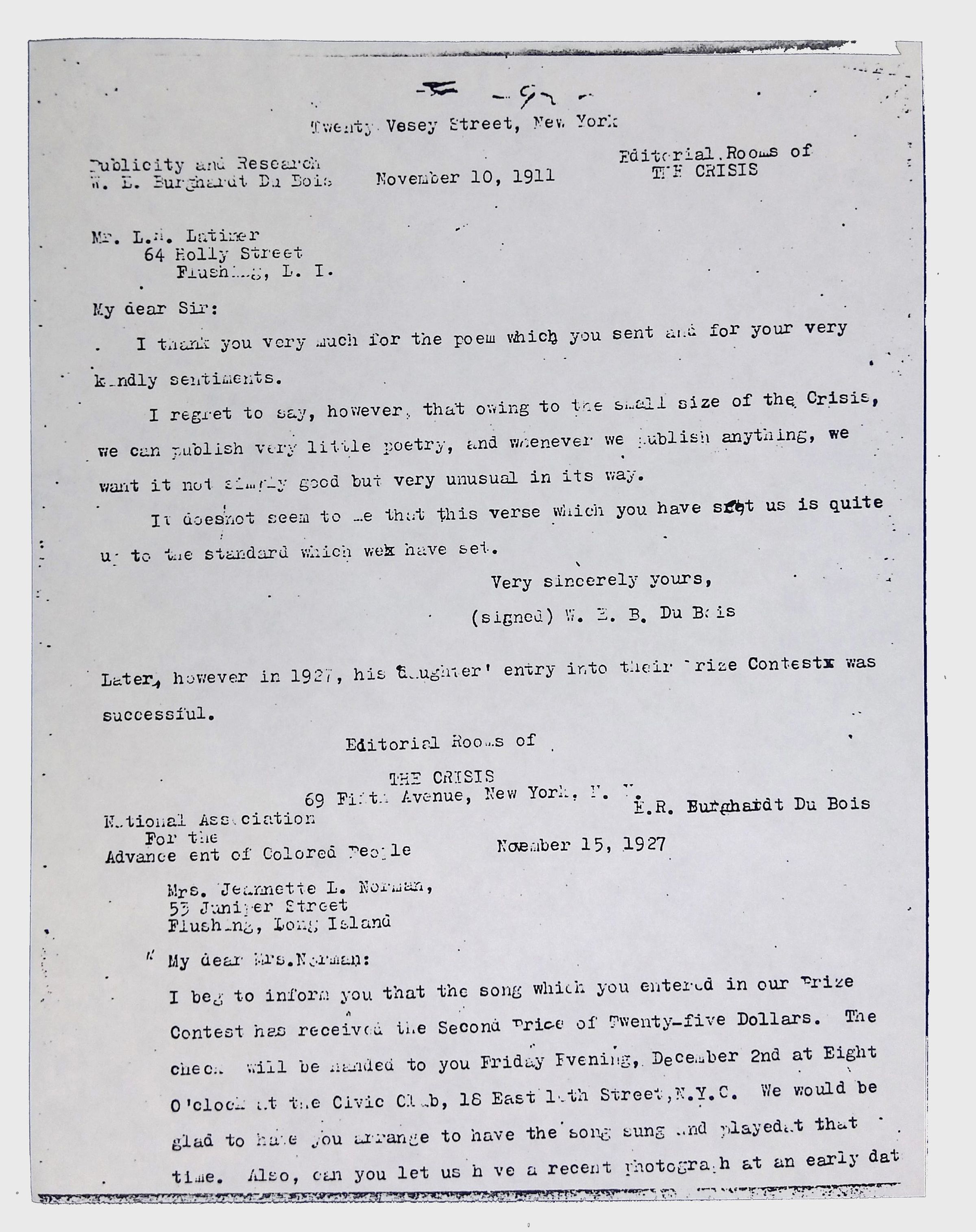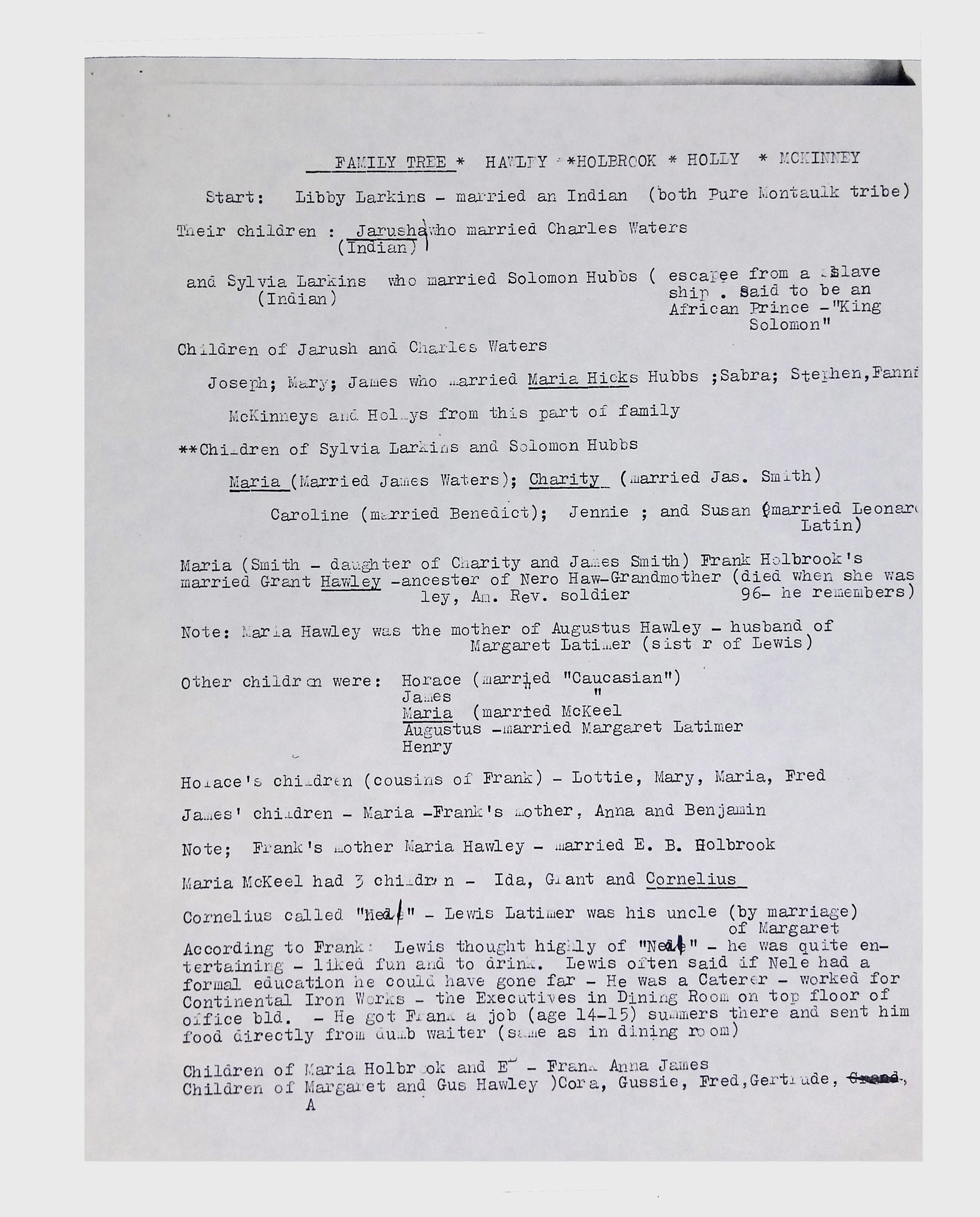 The folder includes important typescripts of interviews about the Latimer family, inherited family documents, and a Latimer family tree, all researched and compiled by Winifred Norman. Some of these documents are unique in the historical and biographical details they provide about Lewis Latimer’s career and family life.Context
