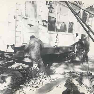 4: This image shows the final steps in relocating and securing the historic house in its new location.Collection