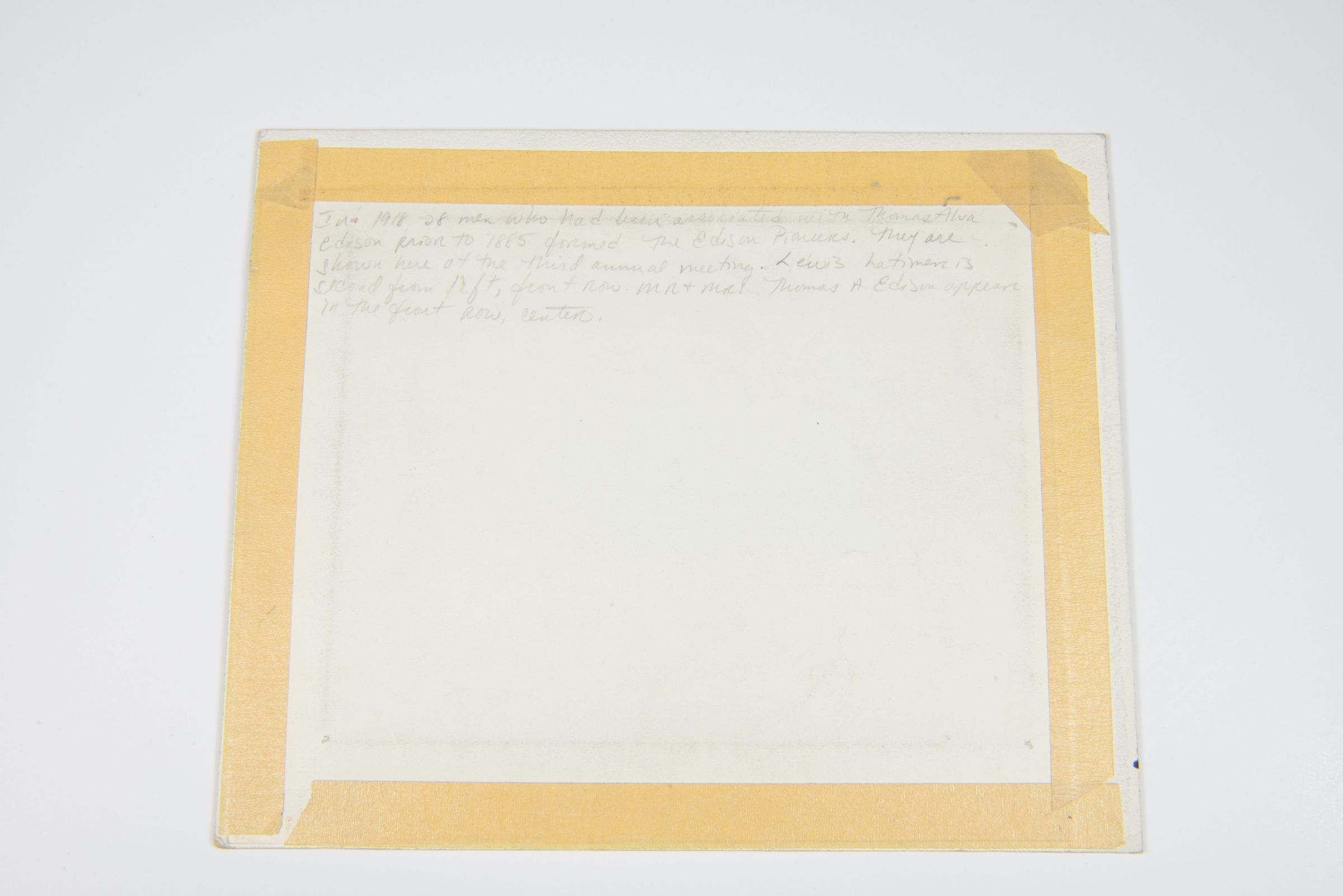 The Edison Pioneers was an exclusive organization founded in 1918, consisting of individuals who had worked with Thomas Edison before 1885. This photograph captures their third annual meeting in 1920. Among the notable attendees was Lewis Howard Latimer, a contributor to Edison's electric lighting systems. Latimer, an African American inventor and engineer, played a role in developing carbon filament technology, which improved the durability of electric light bulbs. This photograph offers insight into the recognition of early electrical pioneers and their continued association with Edison’s legacy.Collection