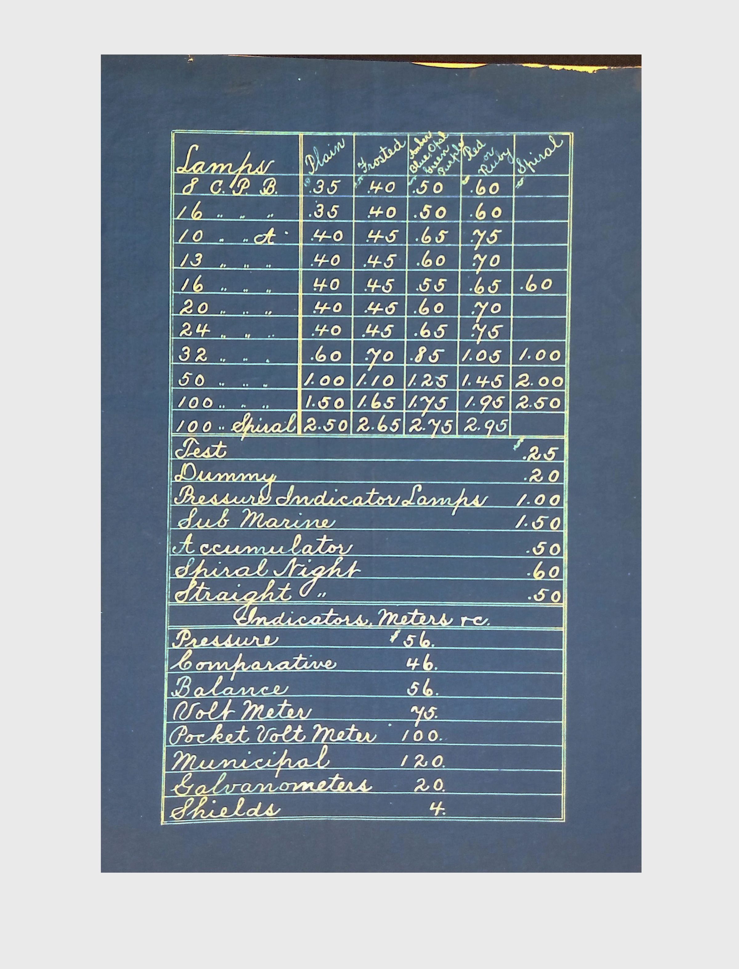 This collection includes a series of blueprints and engineering tables related to electrical and mechanical systems, possibly from the Edison Electric Light Co. or related projects involving Lewis H. Latimer. The images feature calculations, schematic drawings, and technical specifications essential for historical engineering analysis.Collection