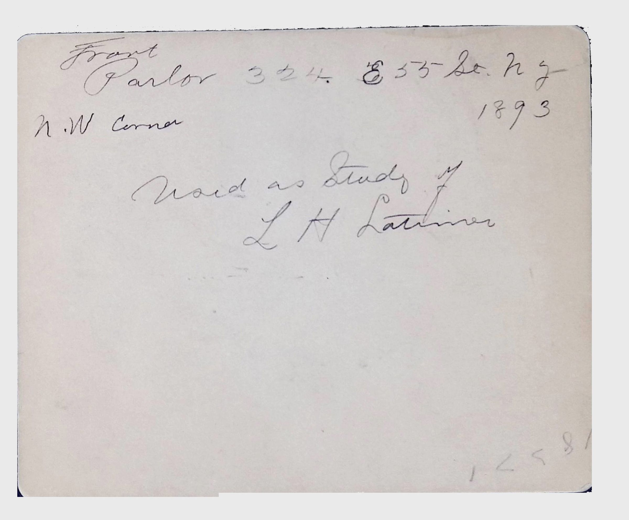 This collection features early photographic portraits of Lewis Howard Latimer, along with images related to his home and personal life. The materials include a modern copy print of the a formal studio portrait photograph of Latimer in London in 1882;, a photograph of the house in or near Ashfield, Massachusetts that was the residence of his niece Cora Hawley Schuster (daughter of his sister Margaret) and her family; a photograph of a domestic interior, inscribed on the back “Front Parlor 324 E 55 St. NY, N.W. corner, 1893, Used as Study of L H Latimer” (the Latimer family’s Manhattan address before they moved to Brooklyn and then Flushing), and a business cardContext