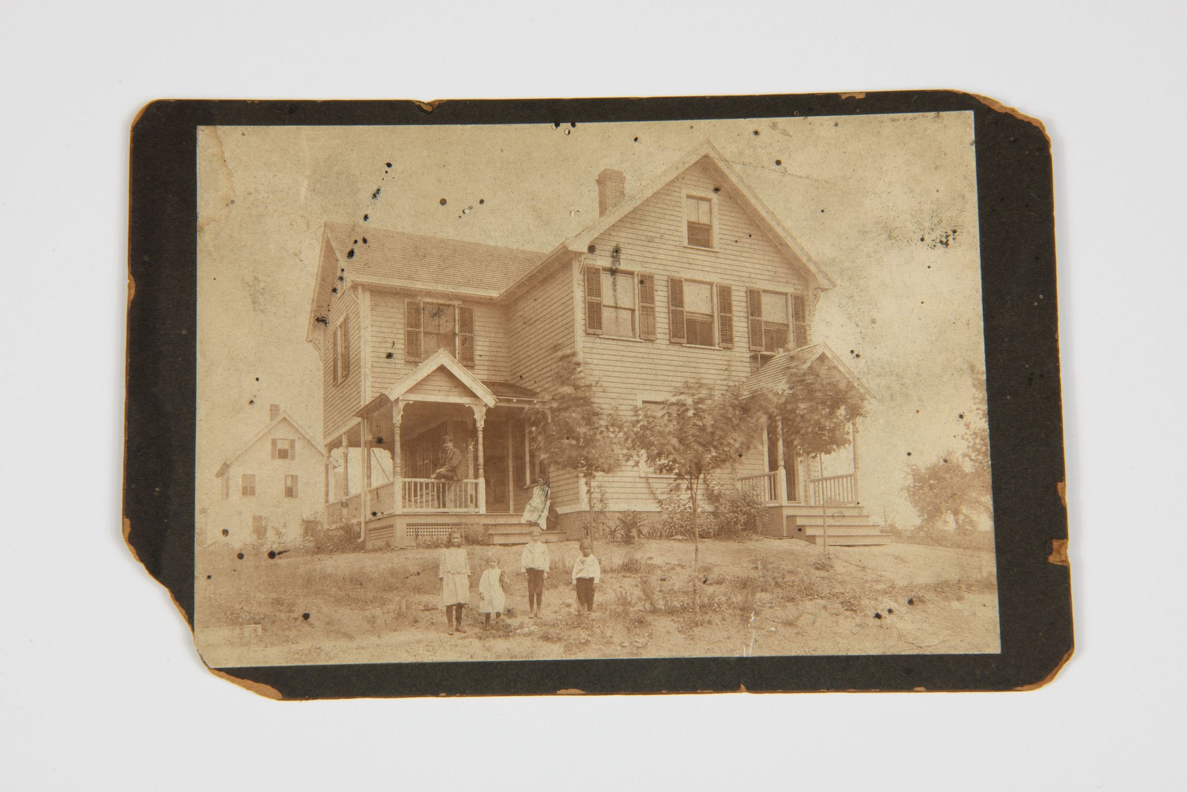 This image offers a glimpse into the domestic life of the early 1900s, reflecting the architectural style of homes and the attire of children from that era.Collection
