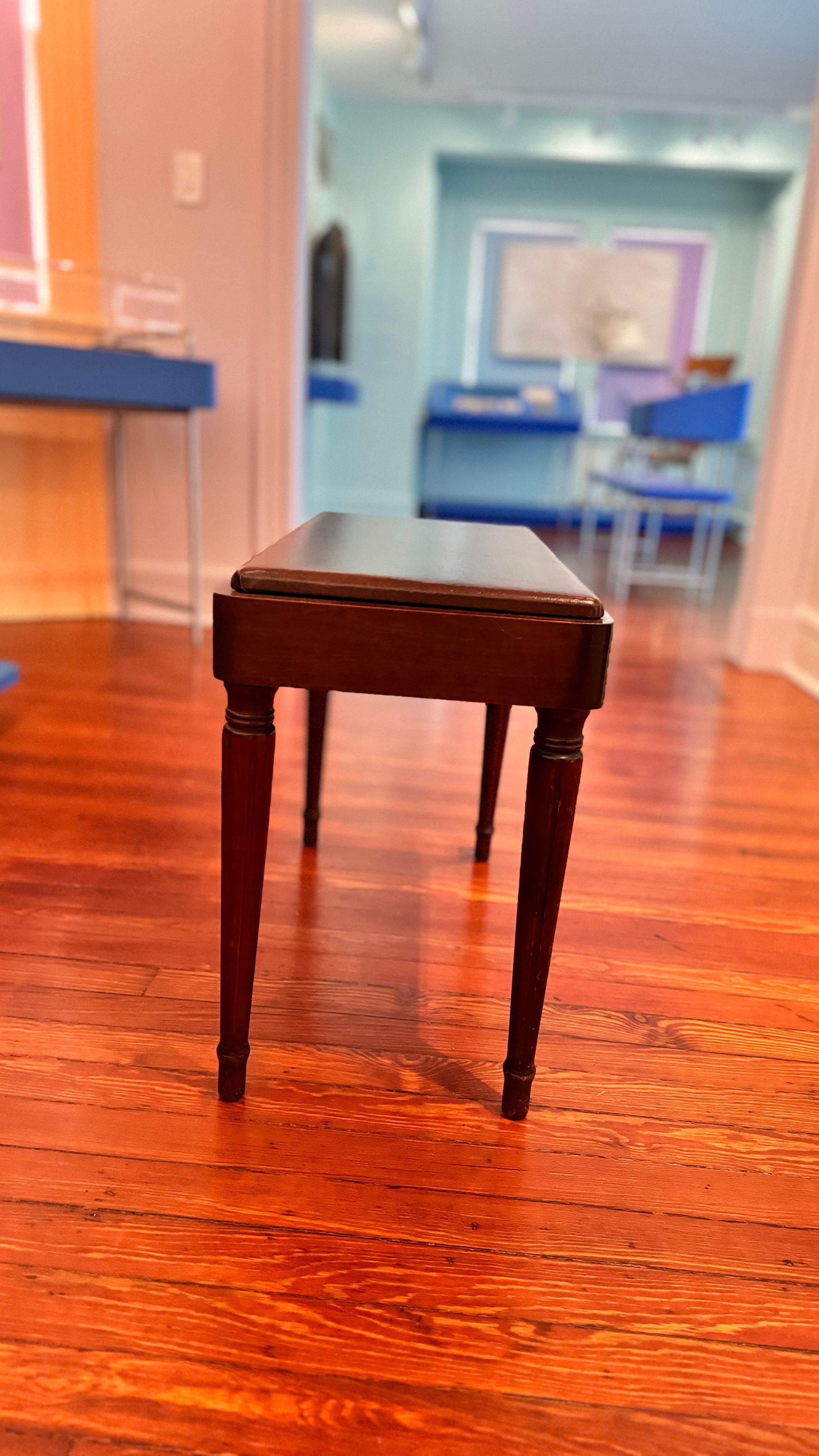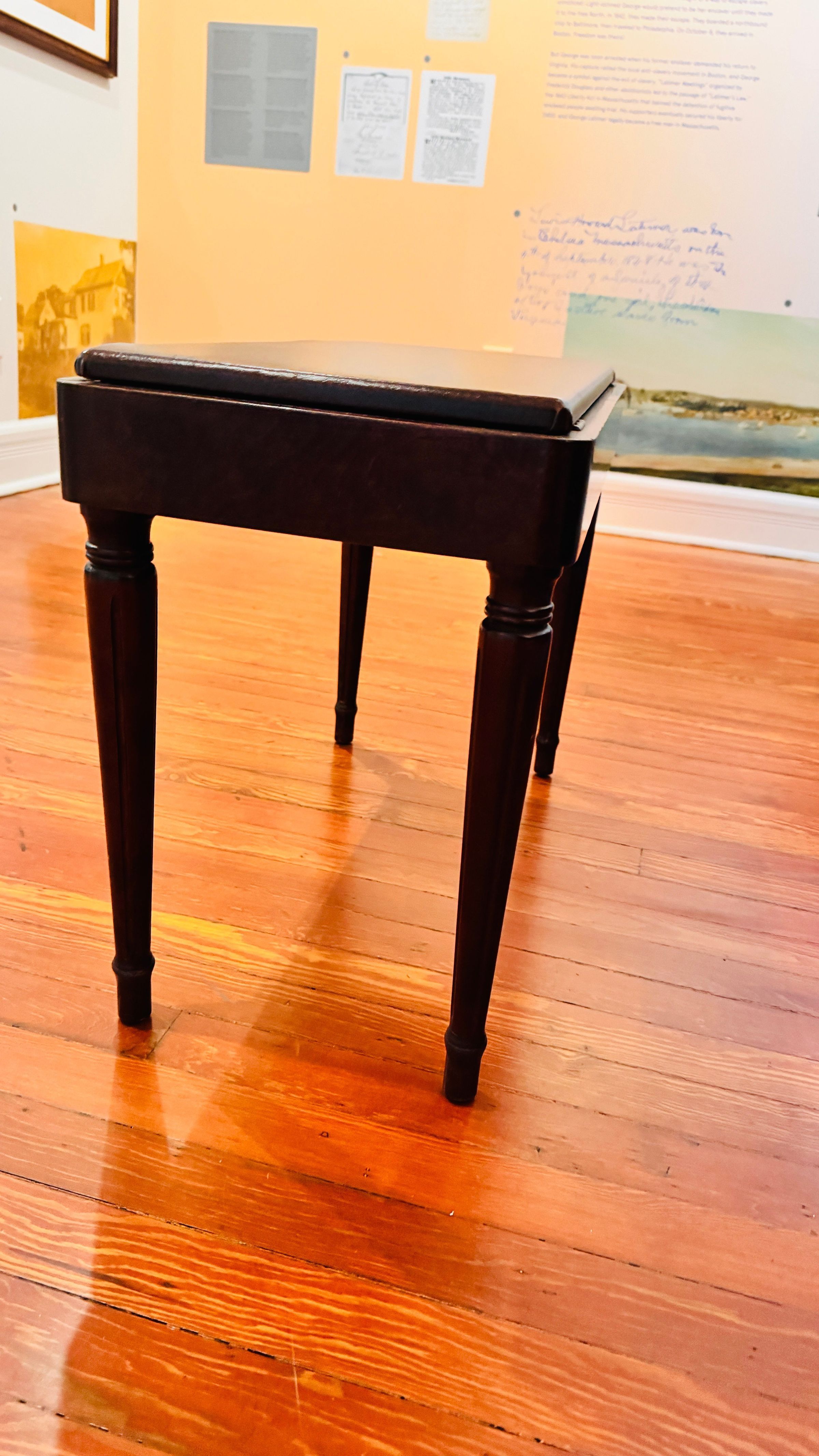 Piano bench from the Latimer family collection, used alongside the family piano to promote musical education and artistic expression. On display at the Lewis Latimer House Museum.Context
