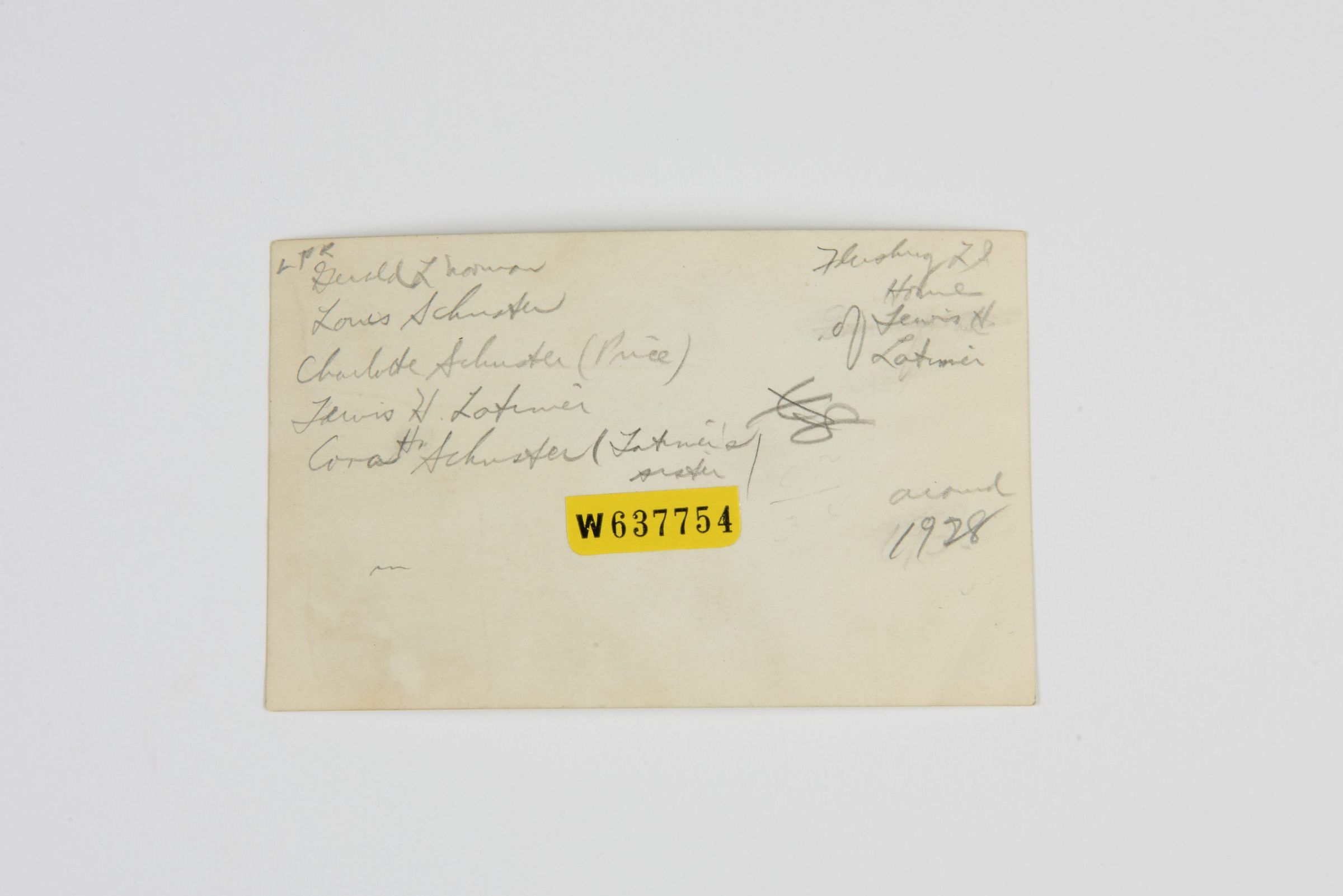 This photograph was taken in Flushing, NY, around 1928. The Latimer family, including children and adults, is formally dressed, suggesting an important occasion or family gathering.Collection