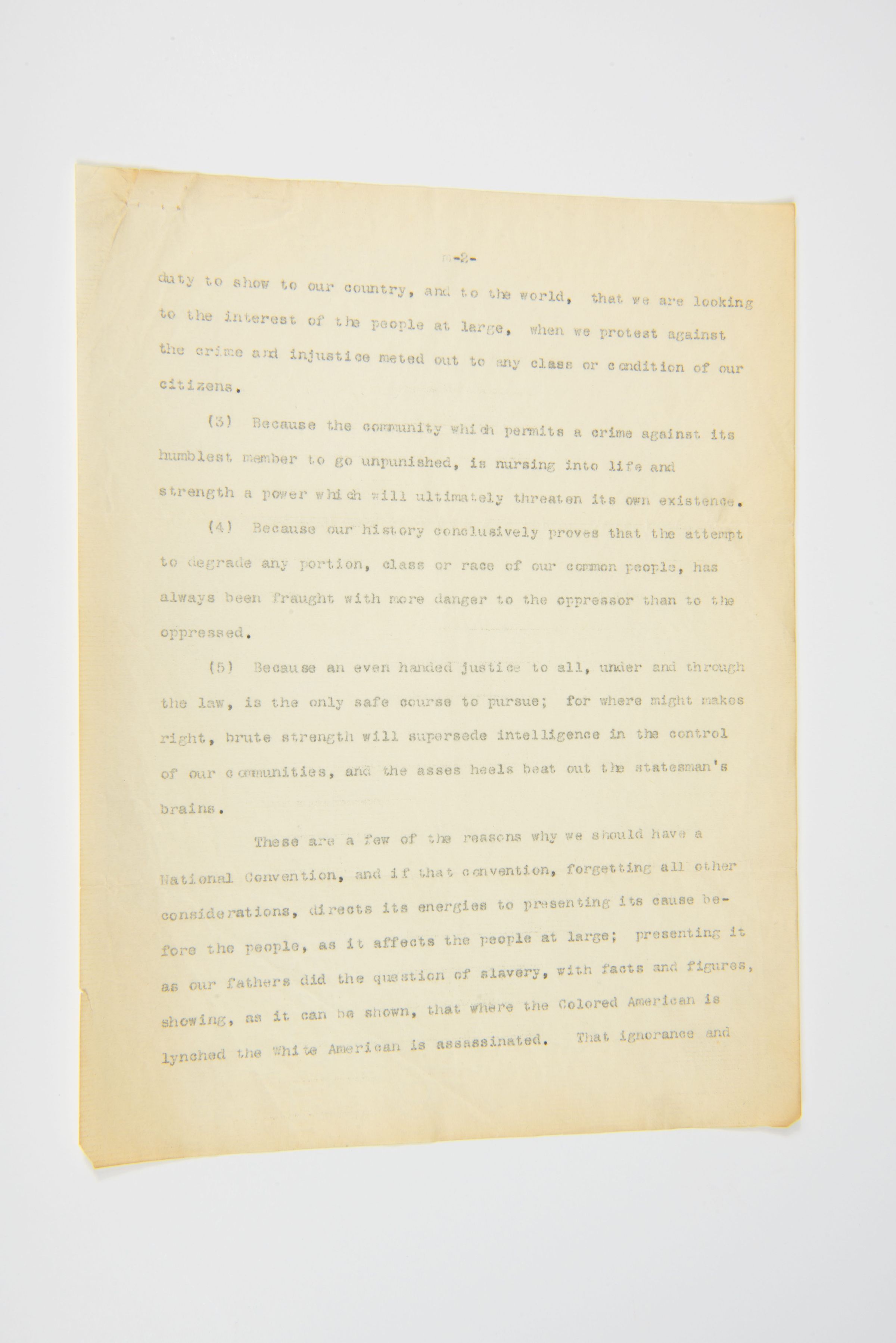 (2) Because, there is no separation of the interests of the Colored American from those of the White American, and it is our duty to show to our country, and to the world, that we are looking to the interest of the people at large, when we protest against the crime and injustice meted out to any class or condition of our citizens.