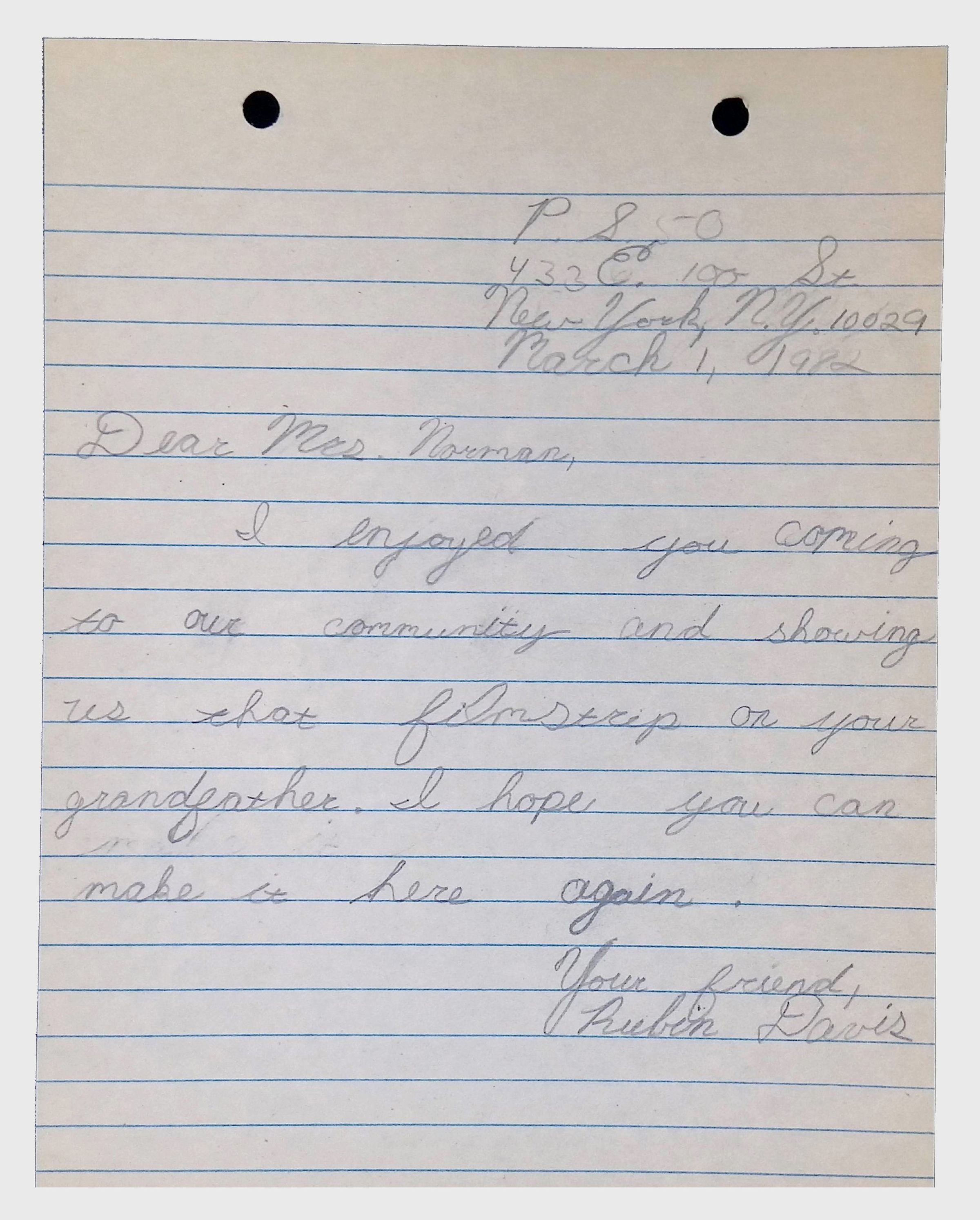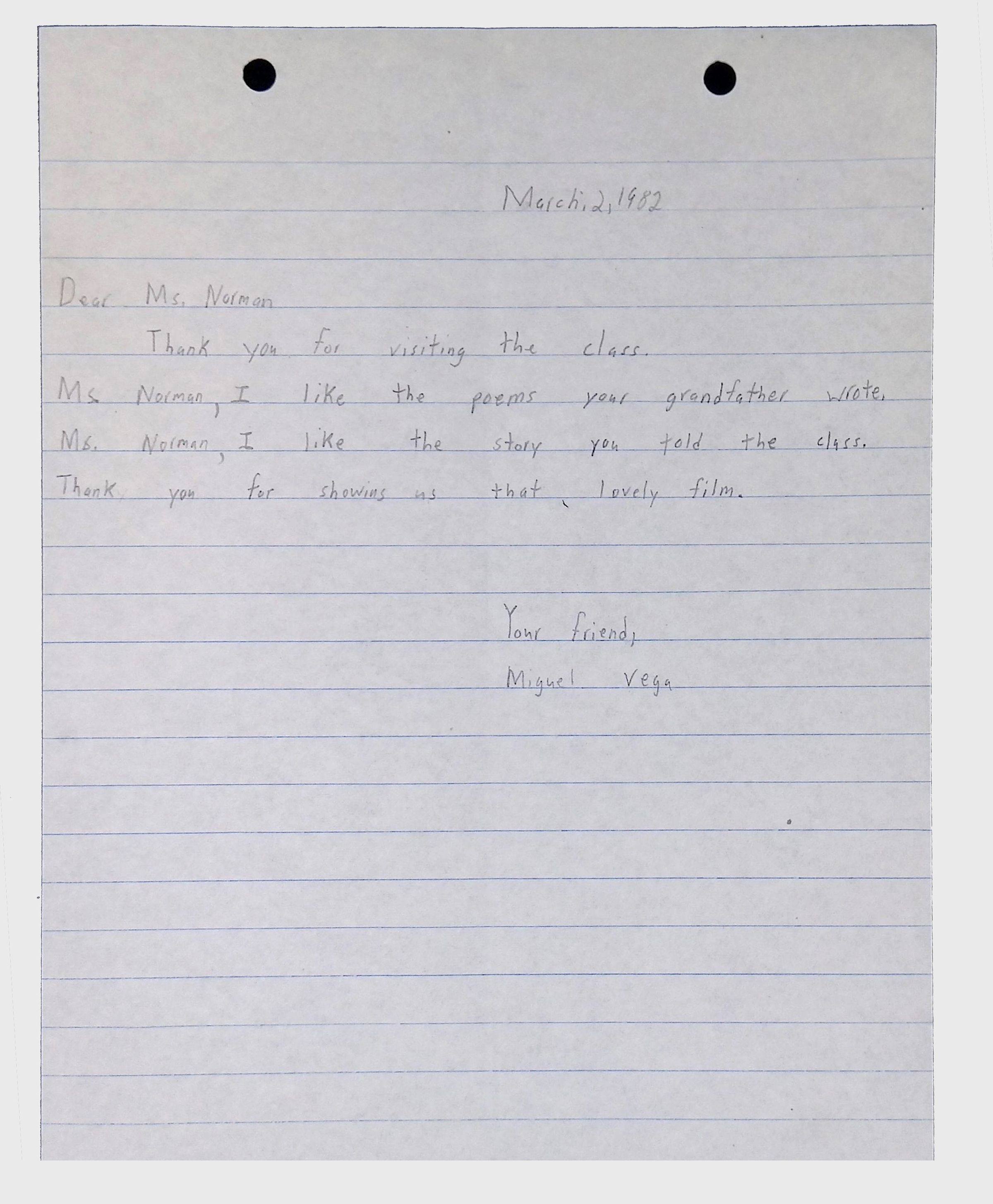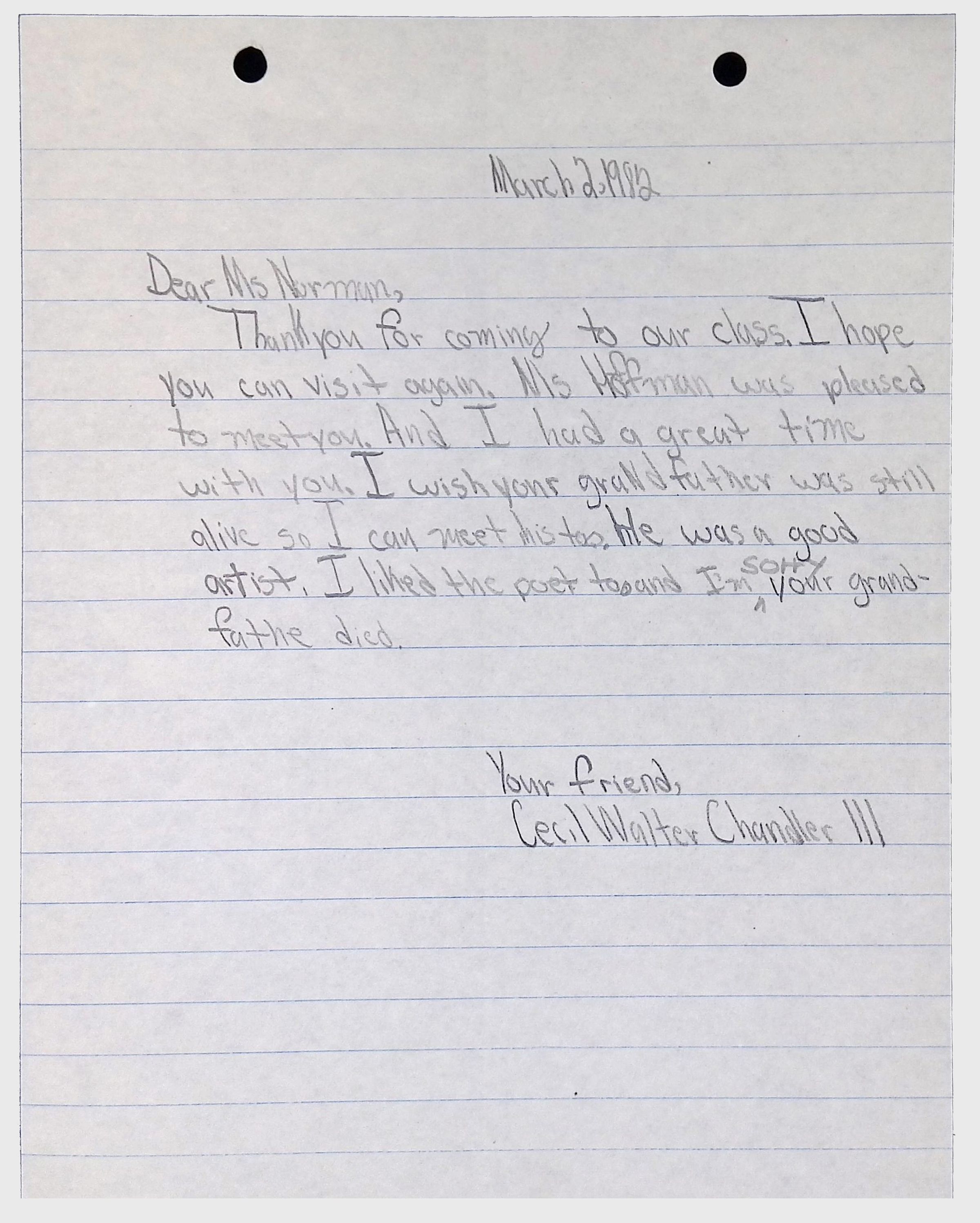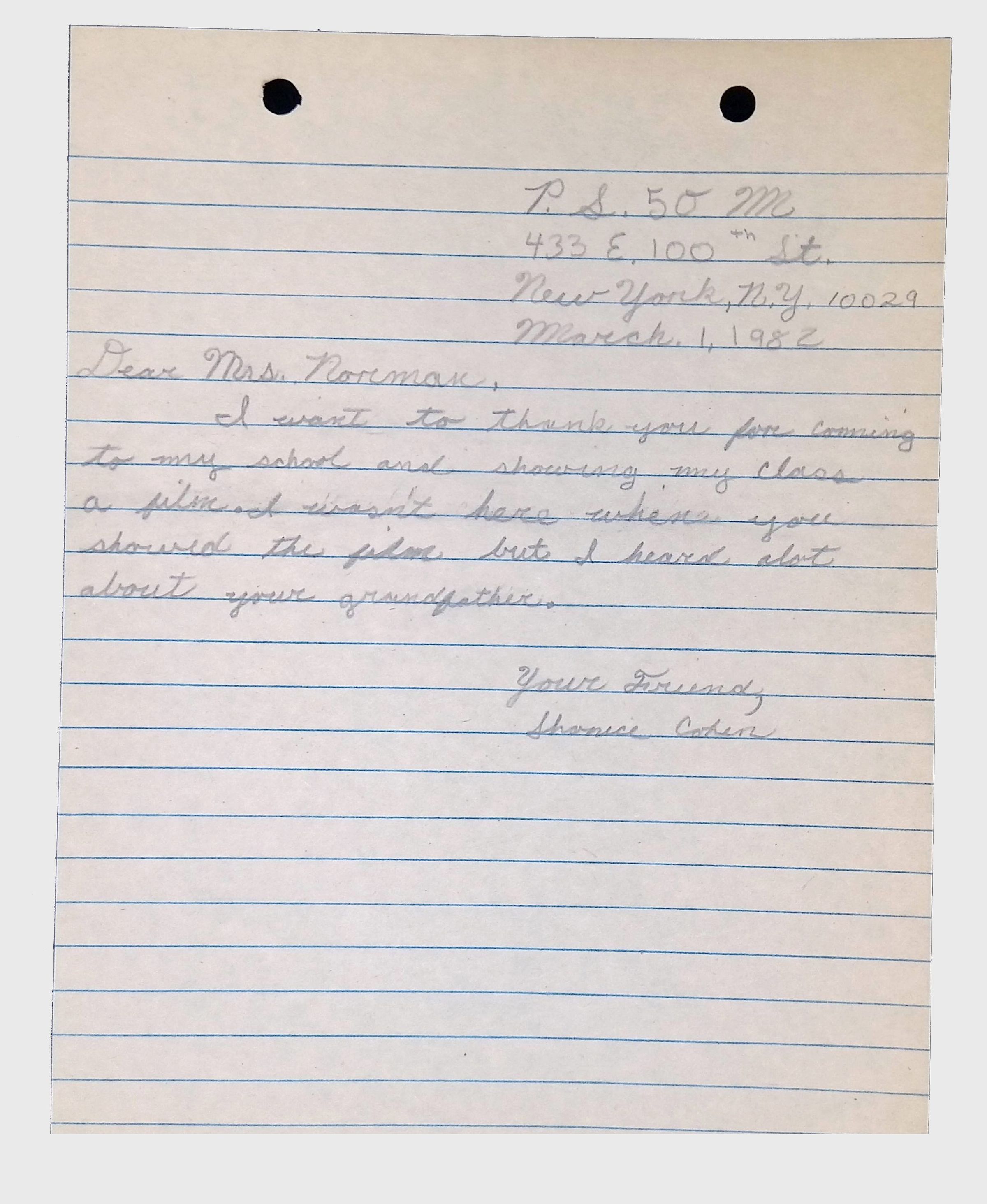 A collection of letters from an assistant principal and several schoolchildren thanking Winifred Norman, Lewis Latimer’s granddaughter, for making a classroom presentation on the life and work of Lewis Latimer at Public School 50 in East Harlem in 1982.Context