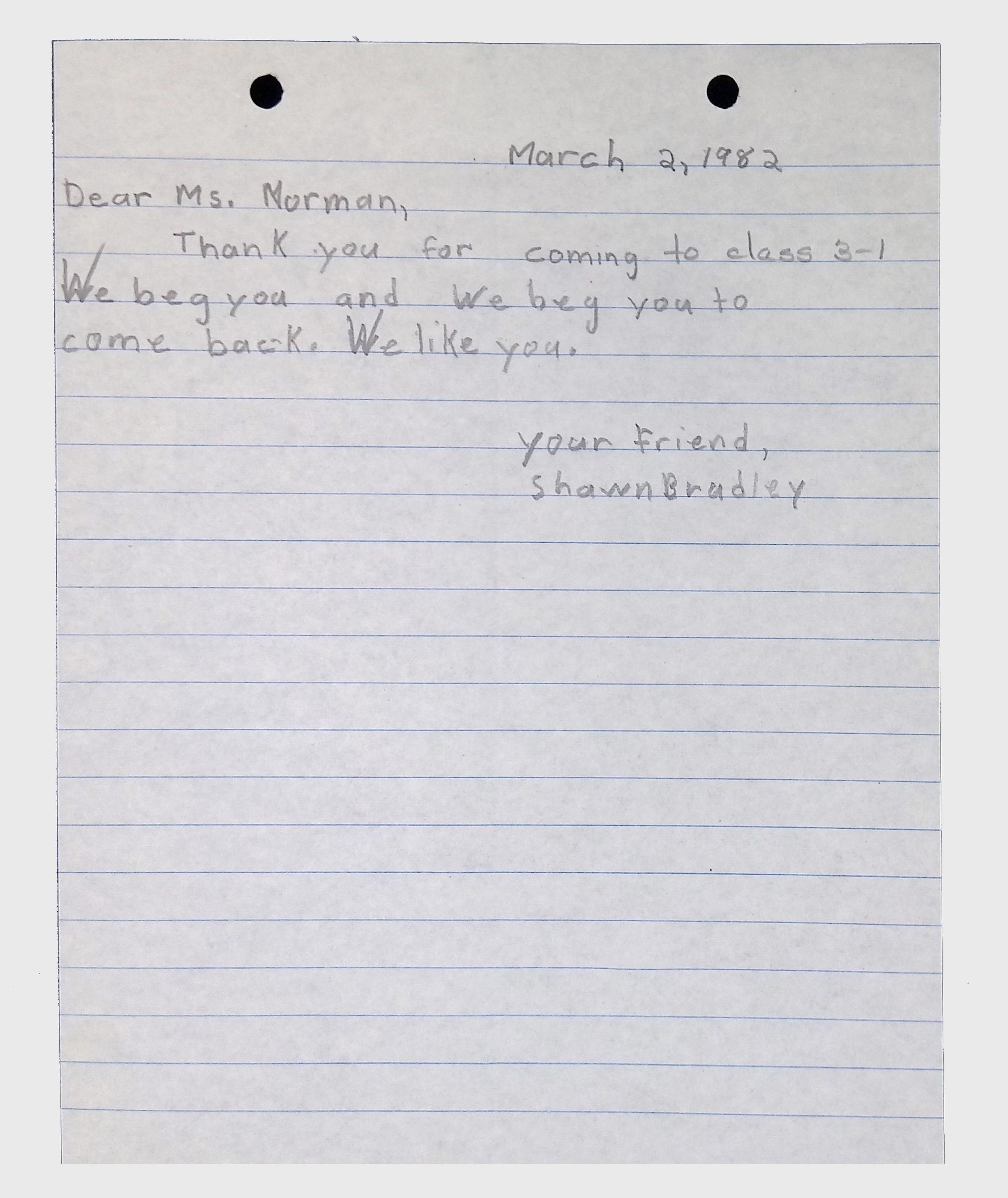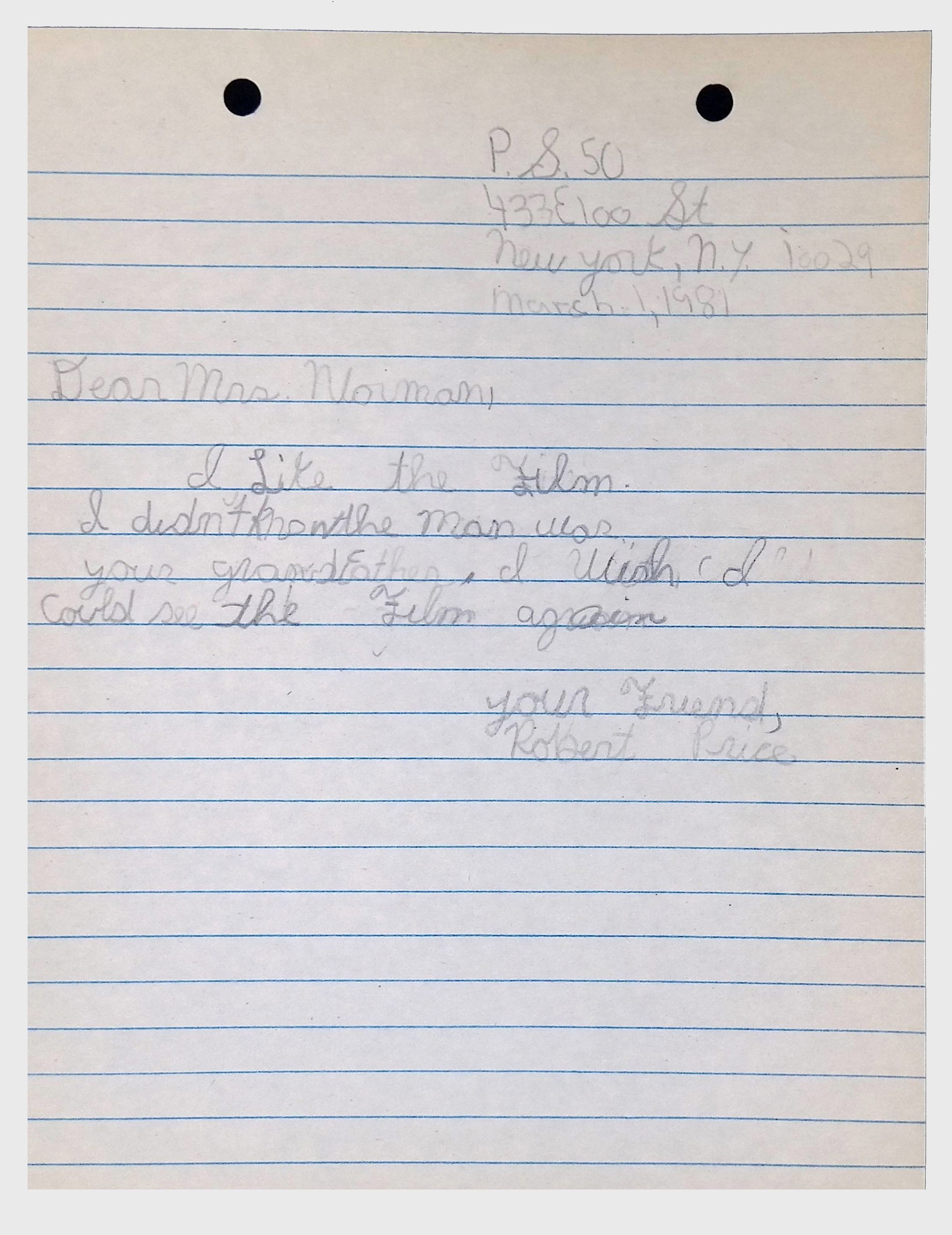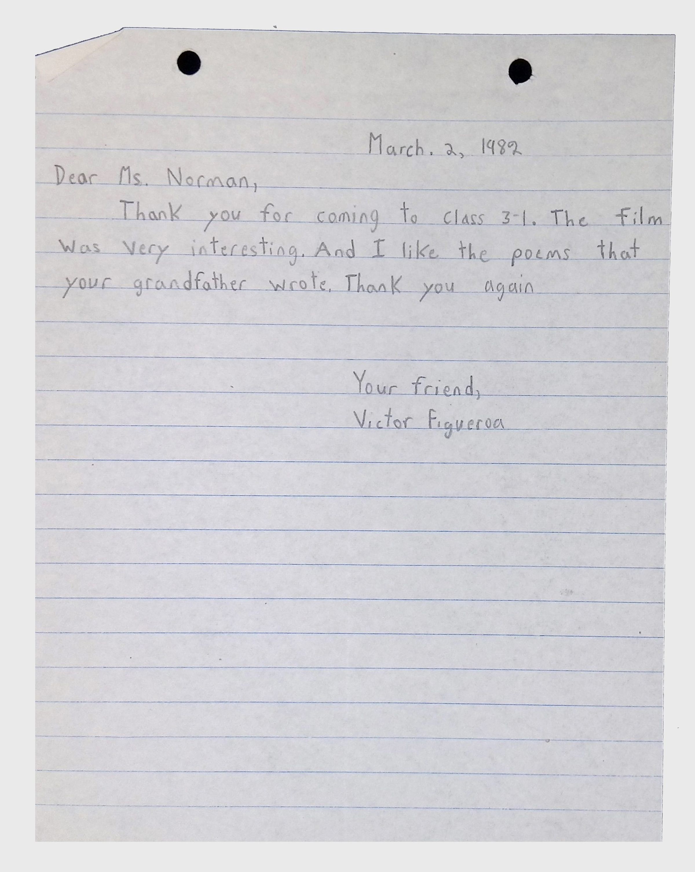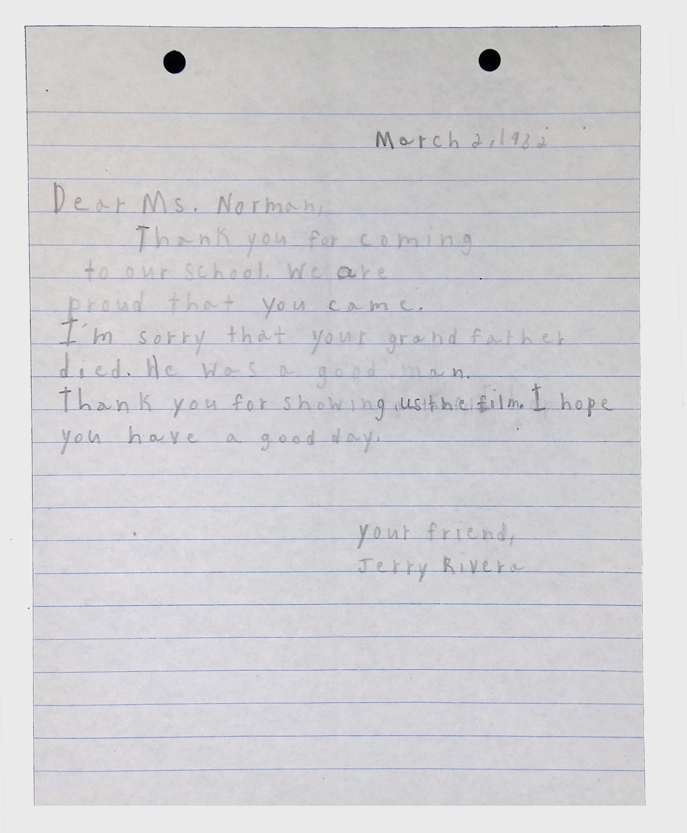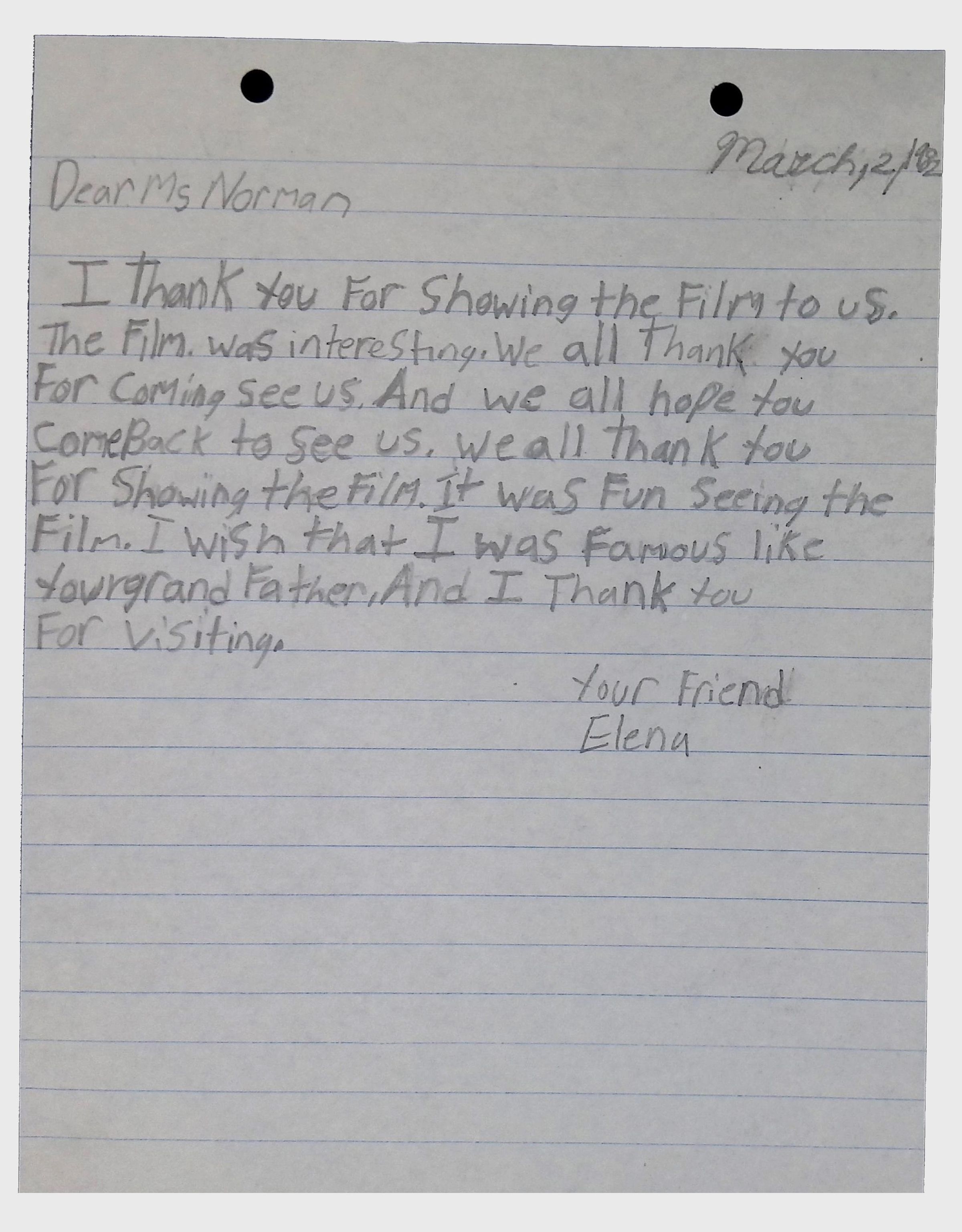 A collection of letters from an assistant principal and several schoolchildren thanking Winifred Norman, Lewis Latimer’s granddaughter, for making a classroom presentation on the life and work of Lewis Latimer at Public School 50 in East Harlem in 1982.Context
