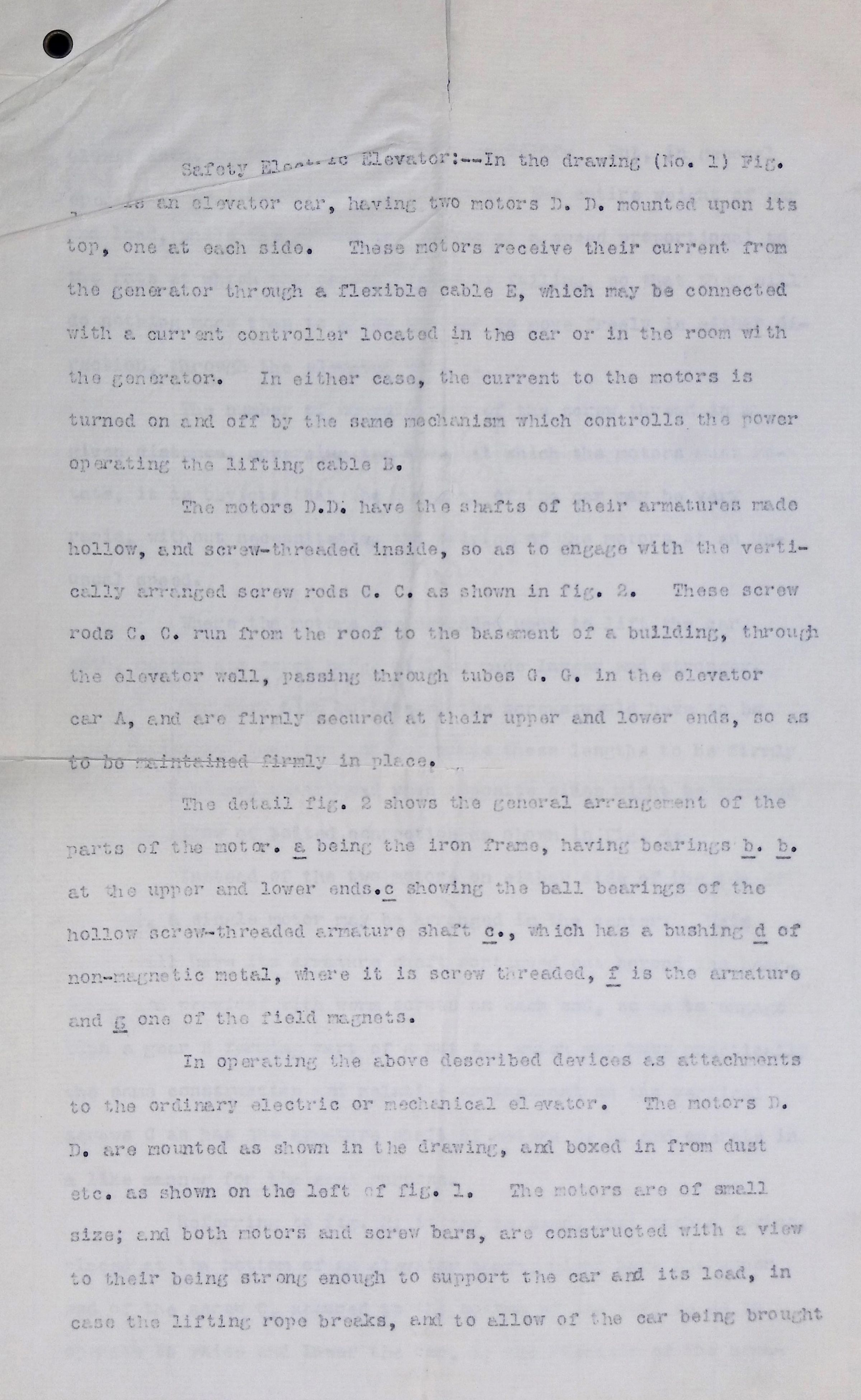 This folder contains typed and handwritten documents related to Lewis Howard Latimer’s professional and personal correspondence, notably including a typescript describing Latimer’s invention of a “Safety Electric Elevator,” signed by “L. H. Latimer, inventor.” Drawings by Latimer illustrating this plan for a system to prevent elevators from “free falling” can be found elsewhere in the collection. Latimer never patented this system, but his interest in improving elevator safety dated back to the early 1880s. .Context