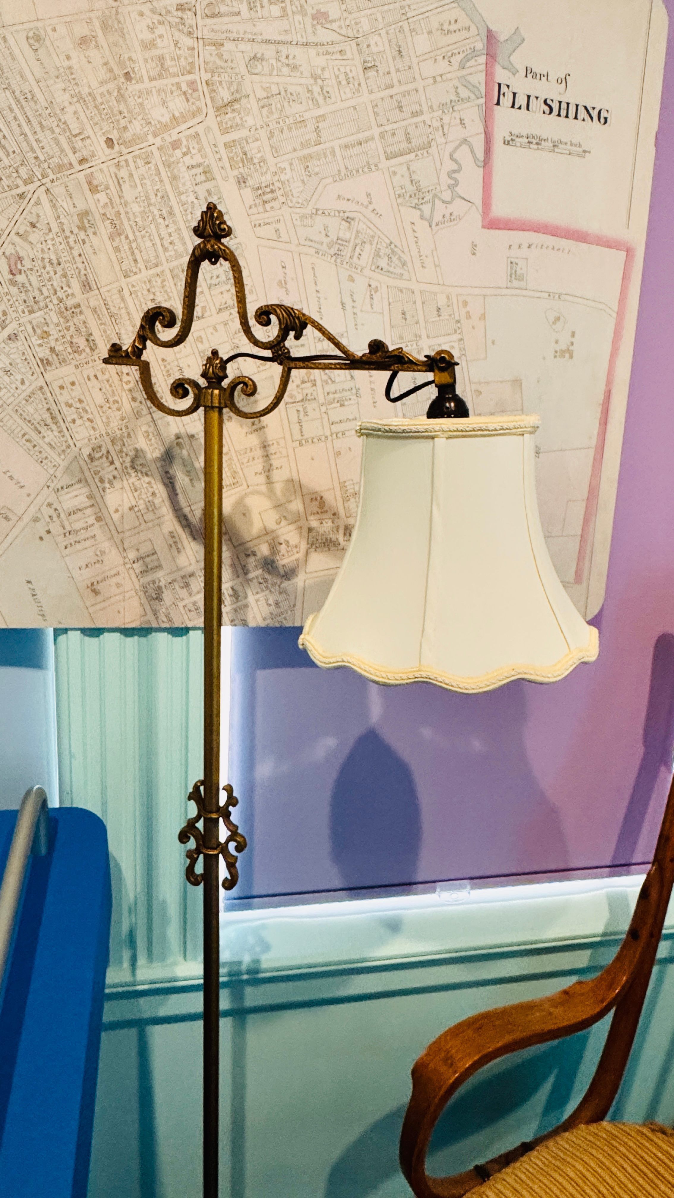 This floor lamp, part of the Latimer collection, reflects the family’s appreciation for refined aesthetics and modern technology. Shade is from 1960s, the light stand is from the Latimer familyCollection