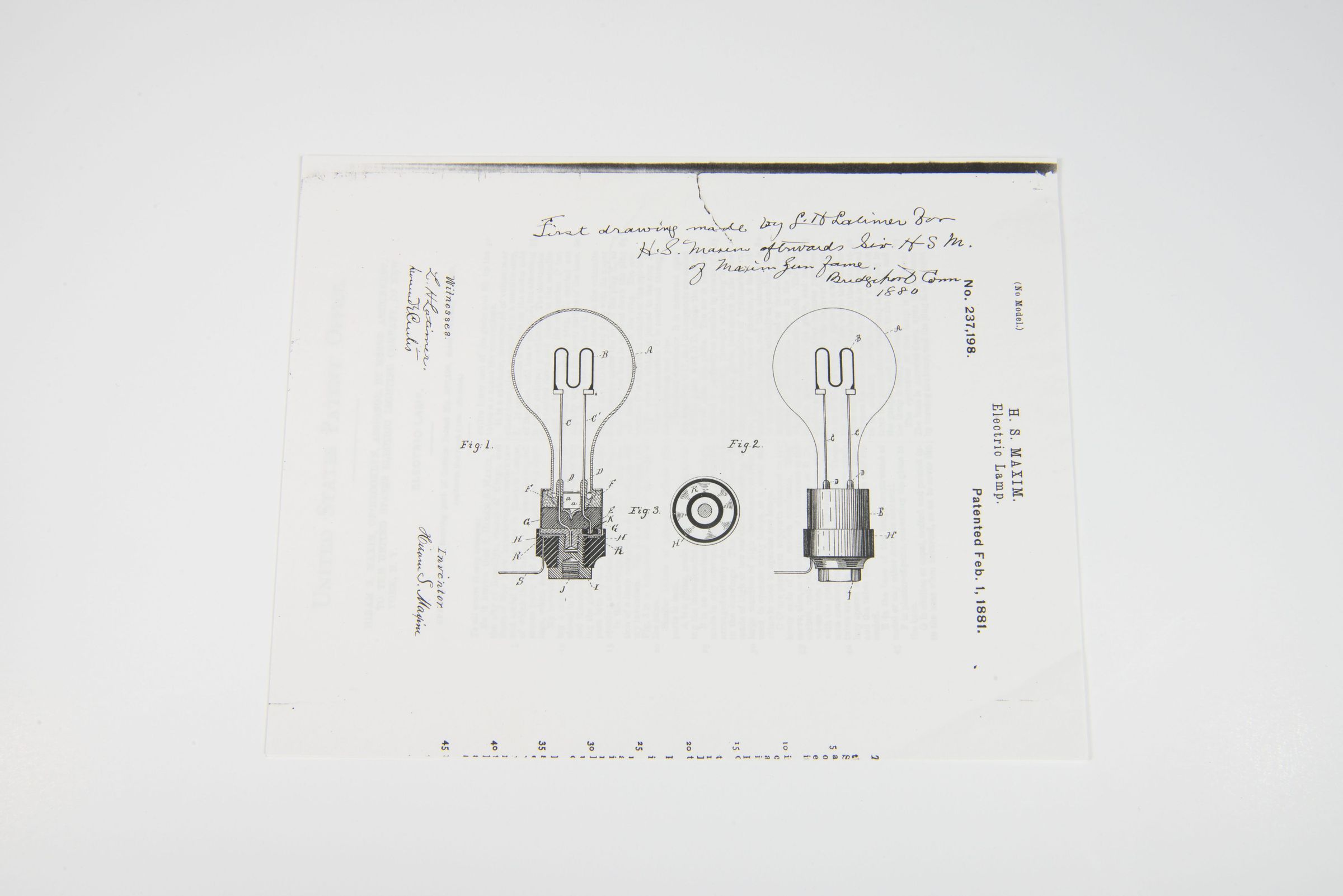 This drawing illustrates Lewis Latimer’s skill as a draftsman and engineer, which was essential in the development and patenting of electric light technology. The note suggests that Hiram S. Maxim, a prominent inventor and competitor of Thomas Edison, hired Latimer to create these technical illustrations.Collection